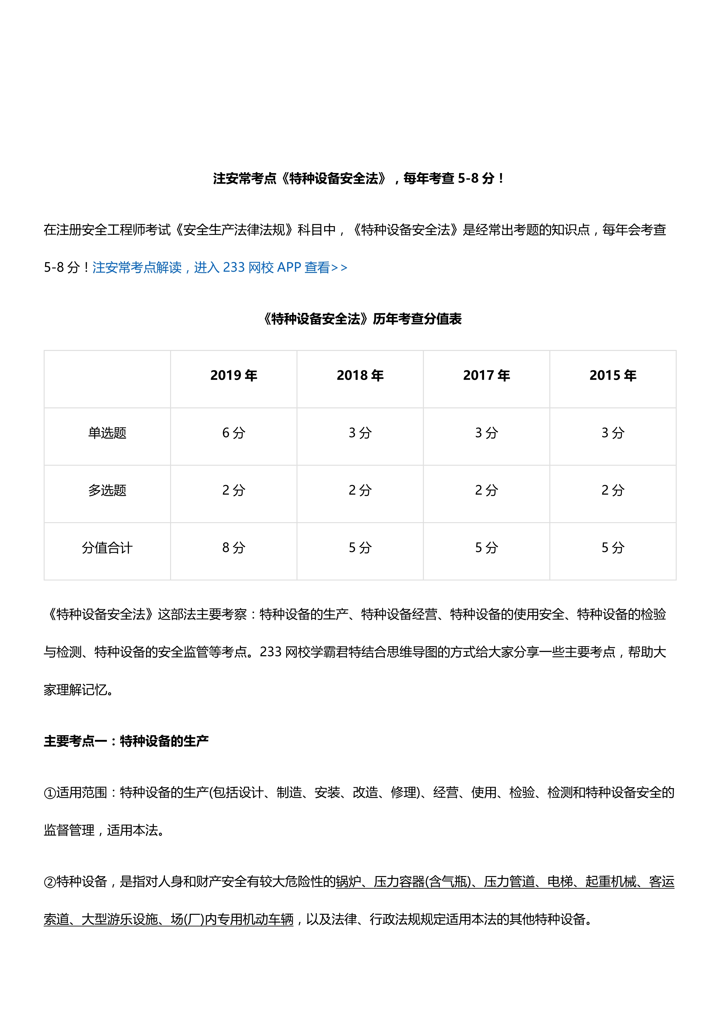 / 【常考点】注安常考点《特种设备安全法》,每年考查5-8分!