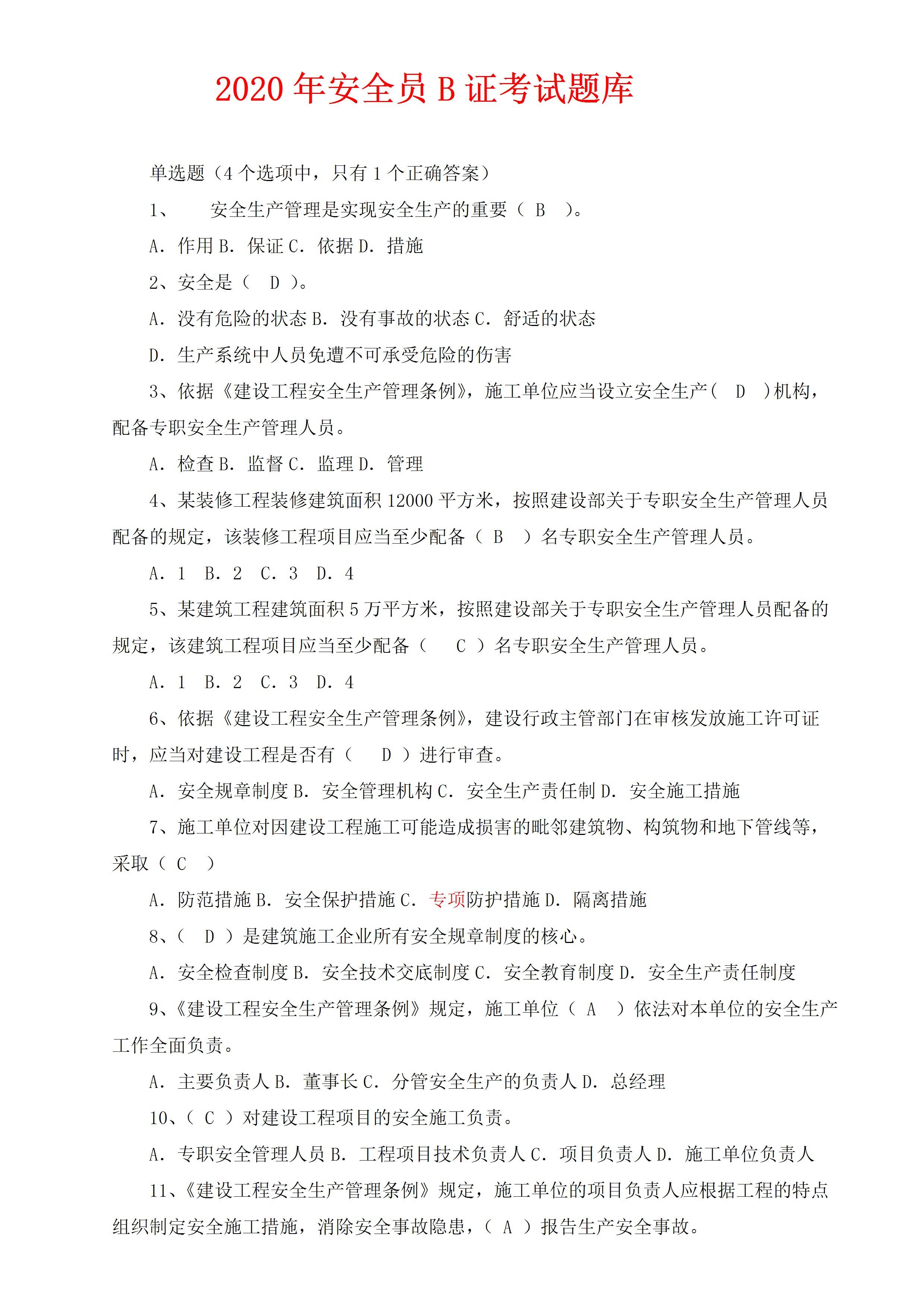 / 82页!6万字!企业安全员B证考试题库