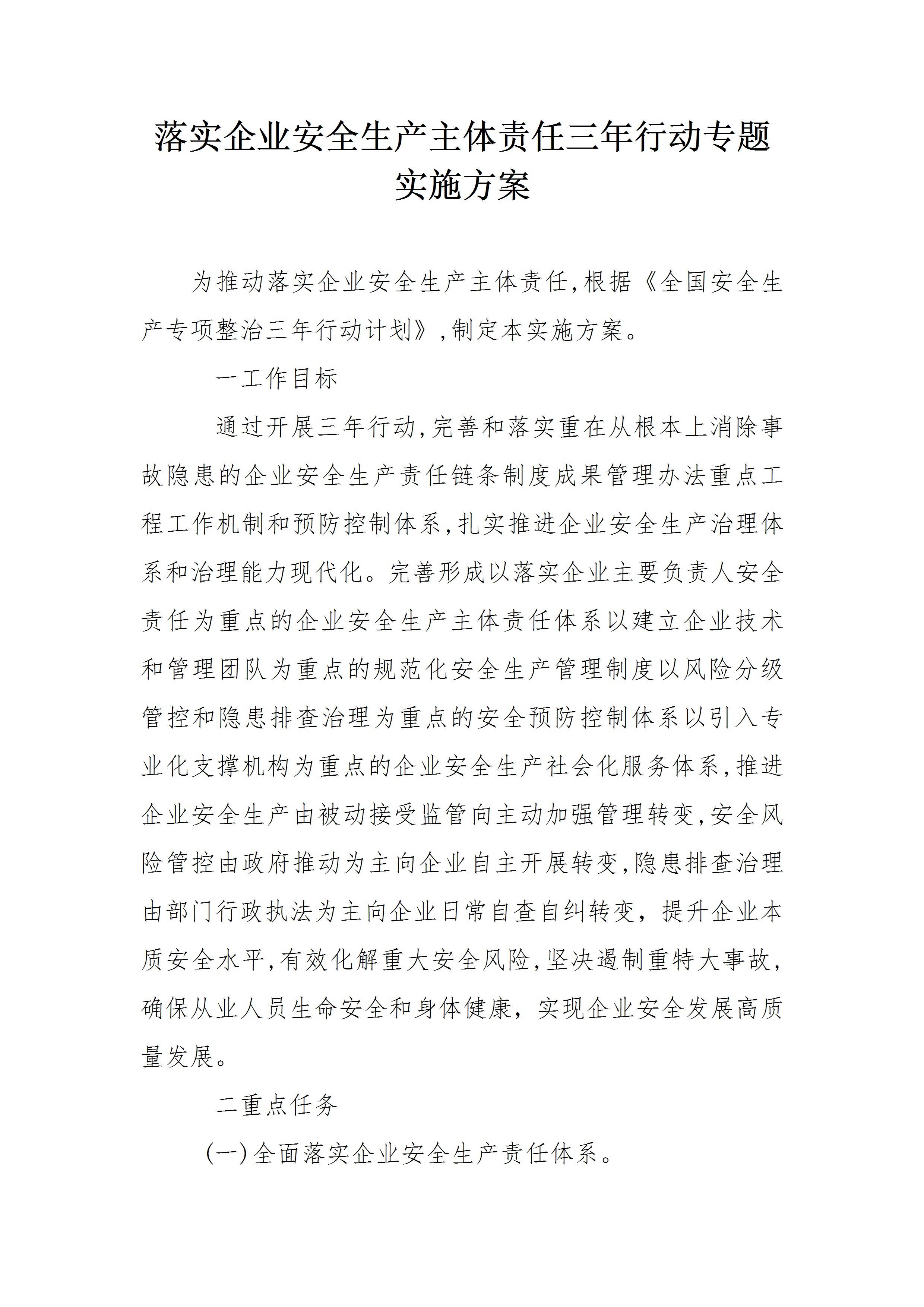 / 落实企业安全生产主体责任三年行动专题实施方案