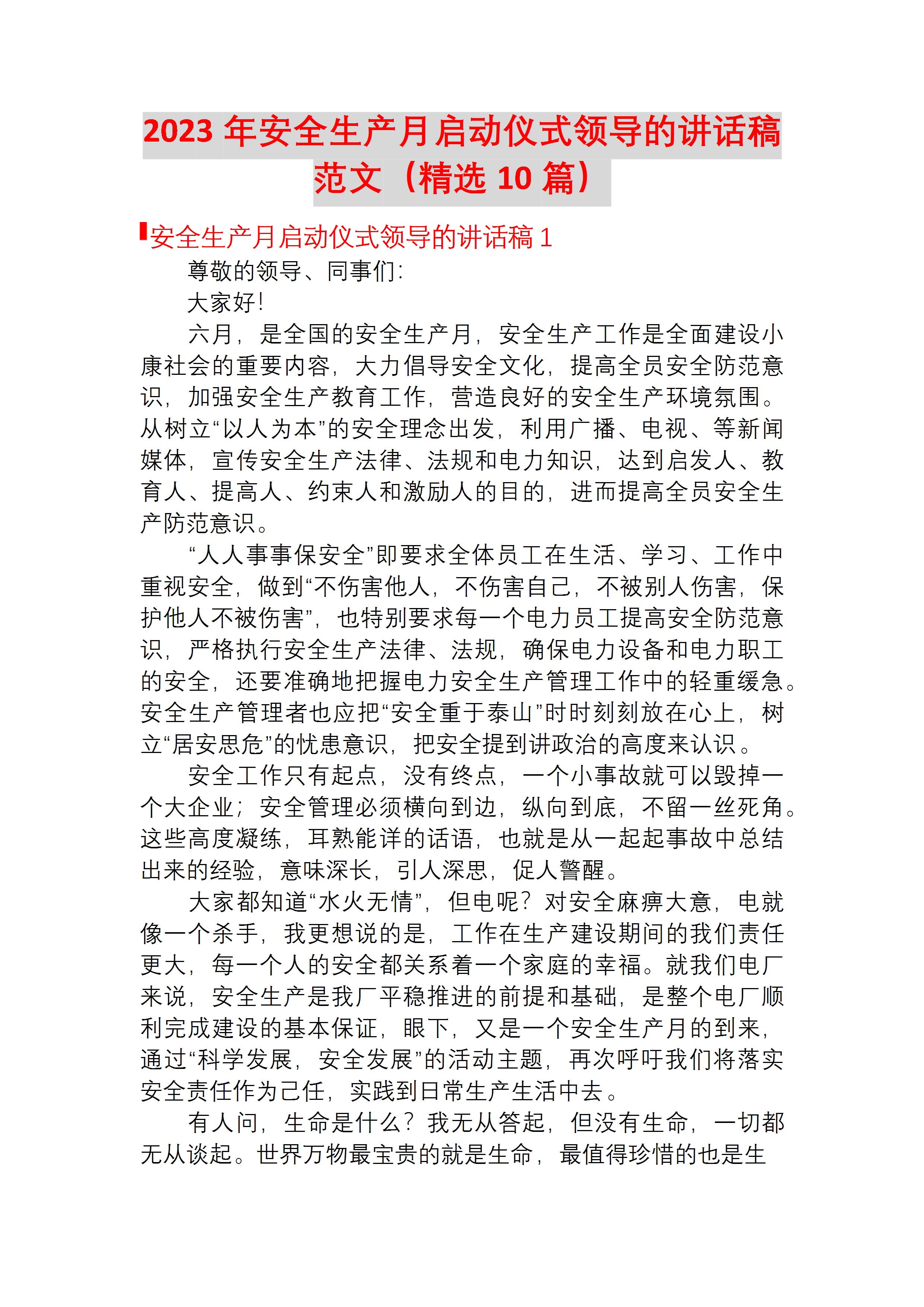 [讲话]2023安全生产月启动仪式领导讲话稿精选10篇
