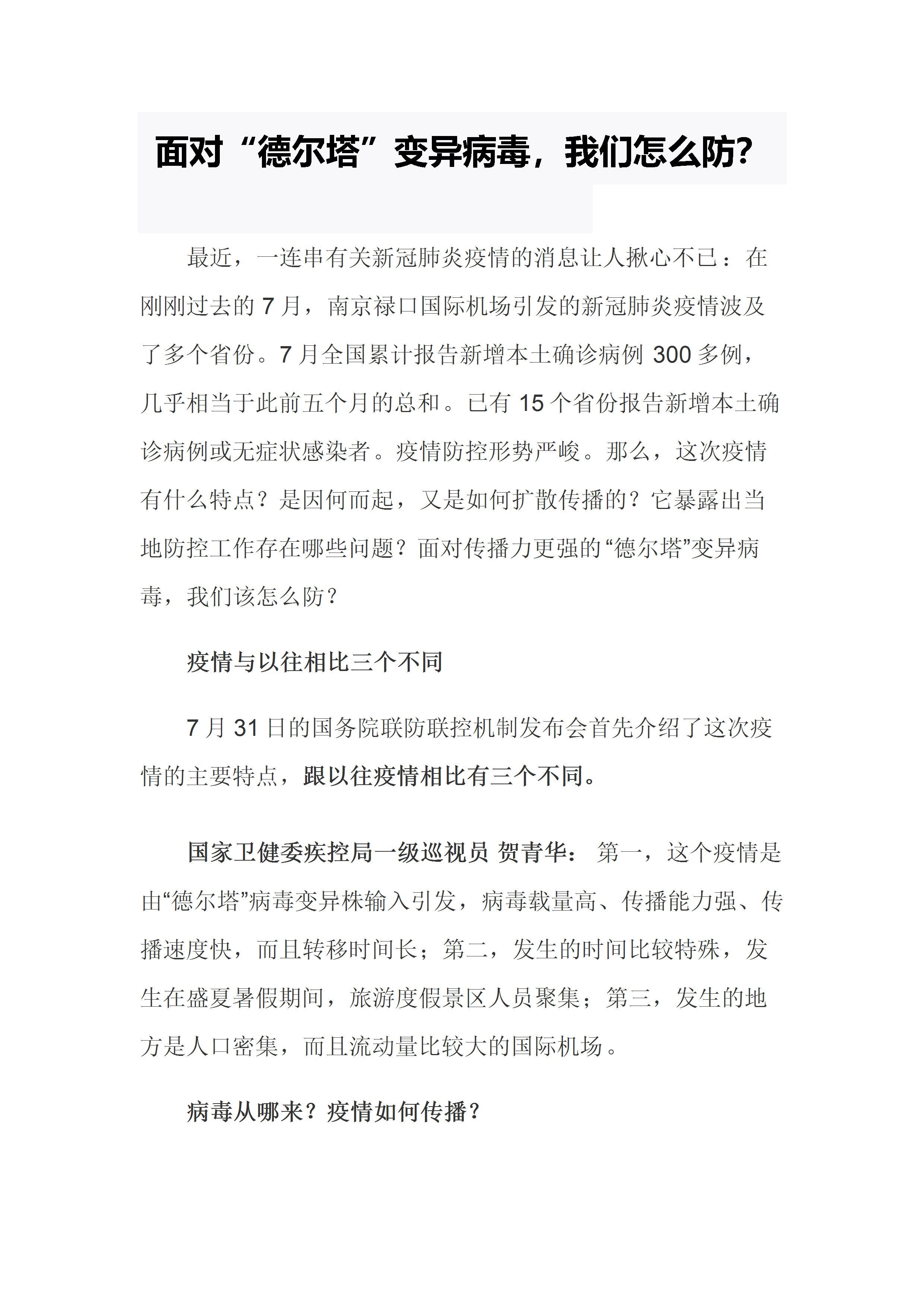 / [科普]面对德尔塔变异病毒,我们怎么防