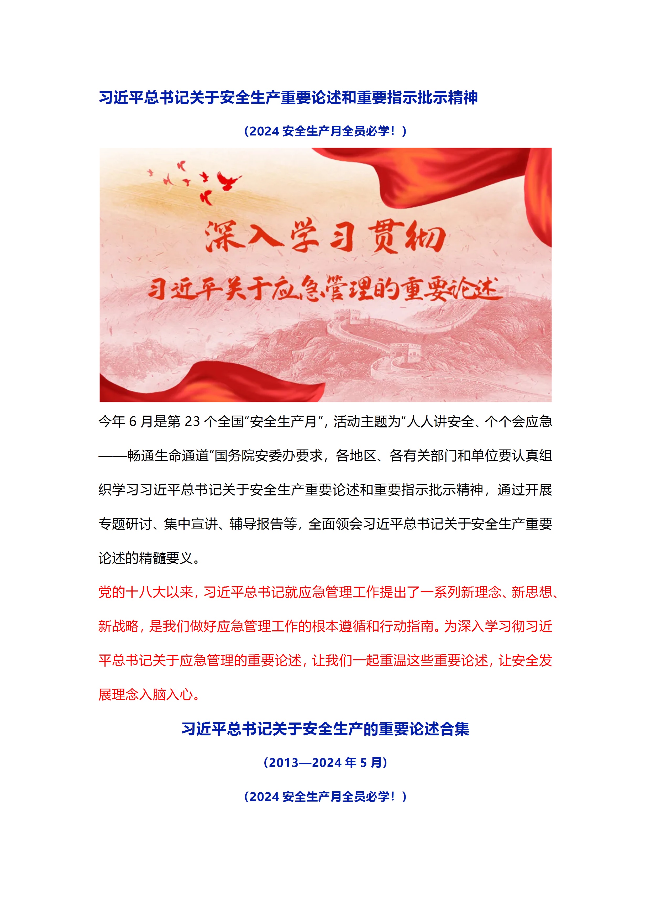 [安全月专题]习近平总书记关于安全生产重要论述和重要指示批示精神2024最新版