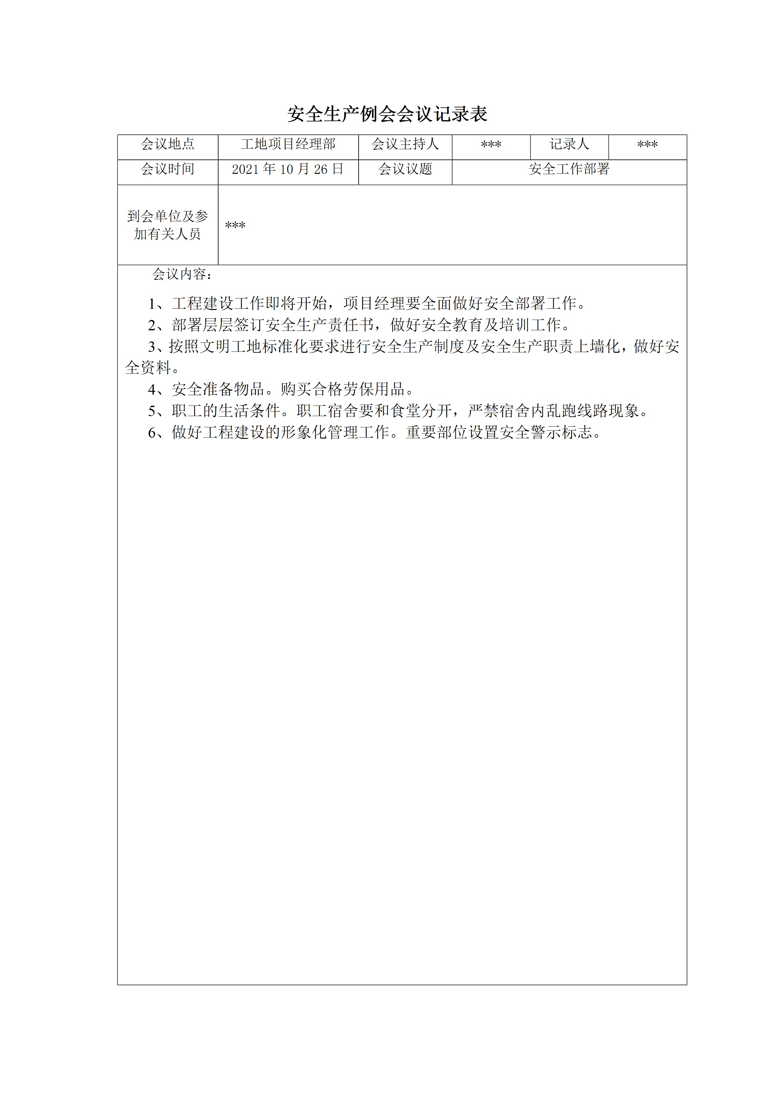 / [例会模板]安全生产例会会议记录表17页