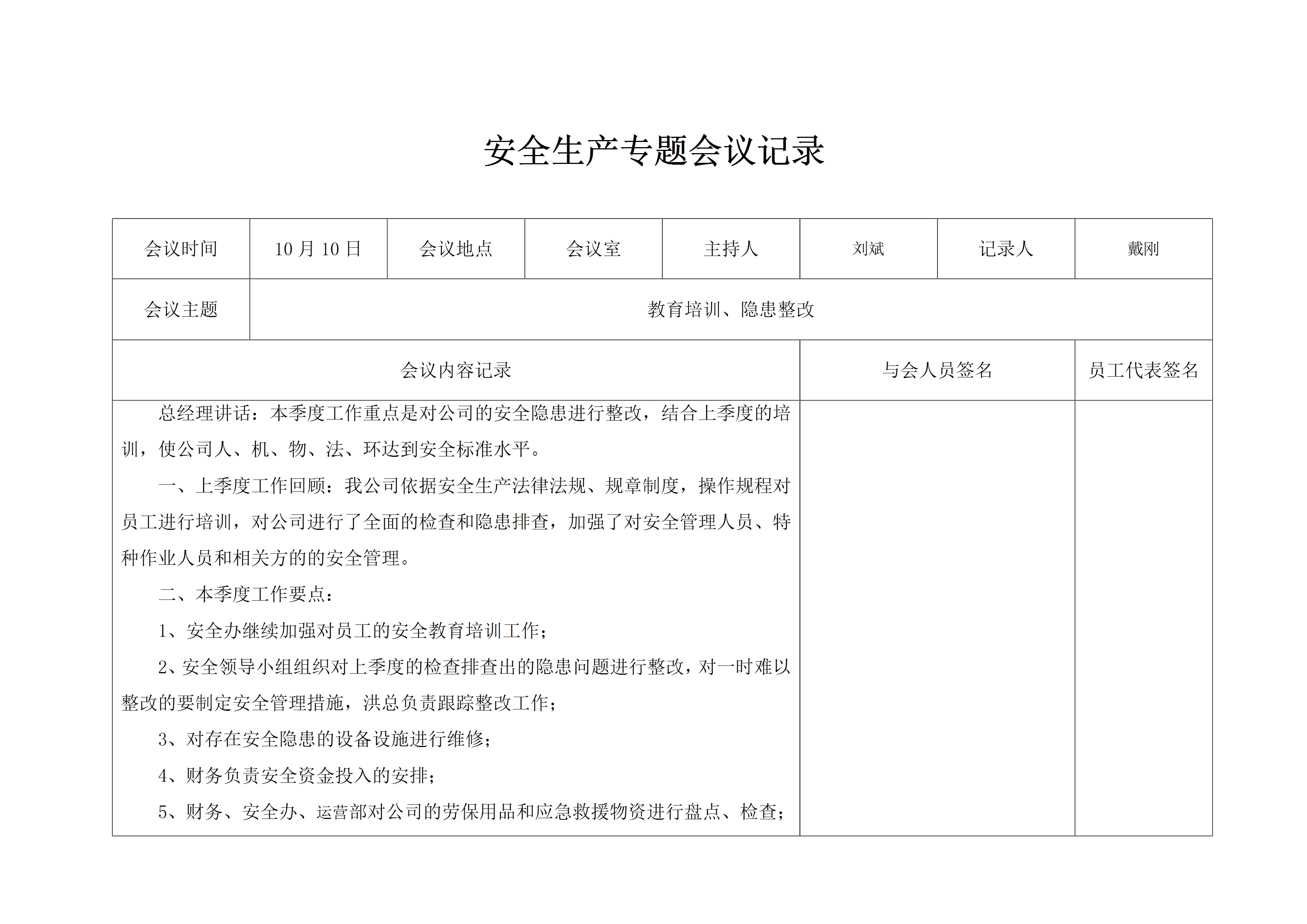 企业全套安全工作会议例会记录模板[ZIP]