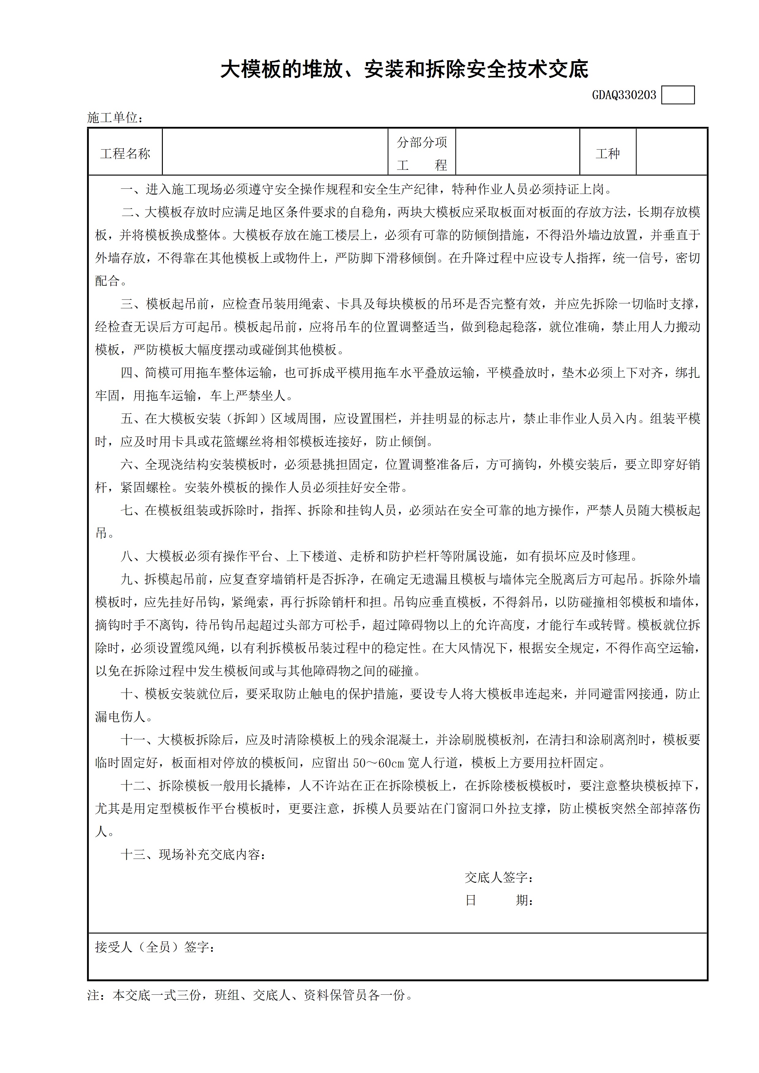 / 3大模板的堆放,安装和拆除安全技术交底GDAQ330203