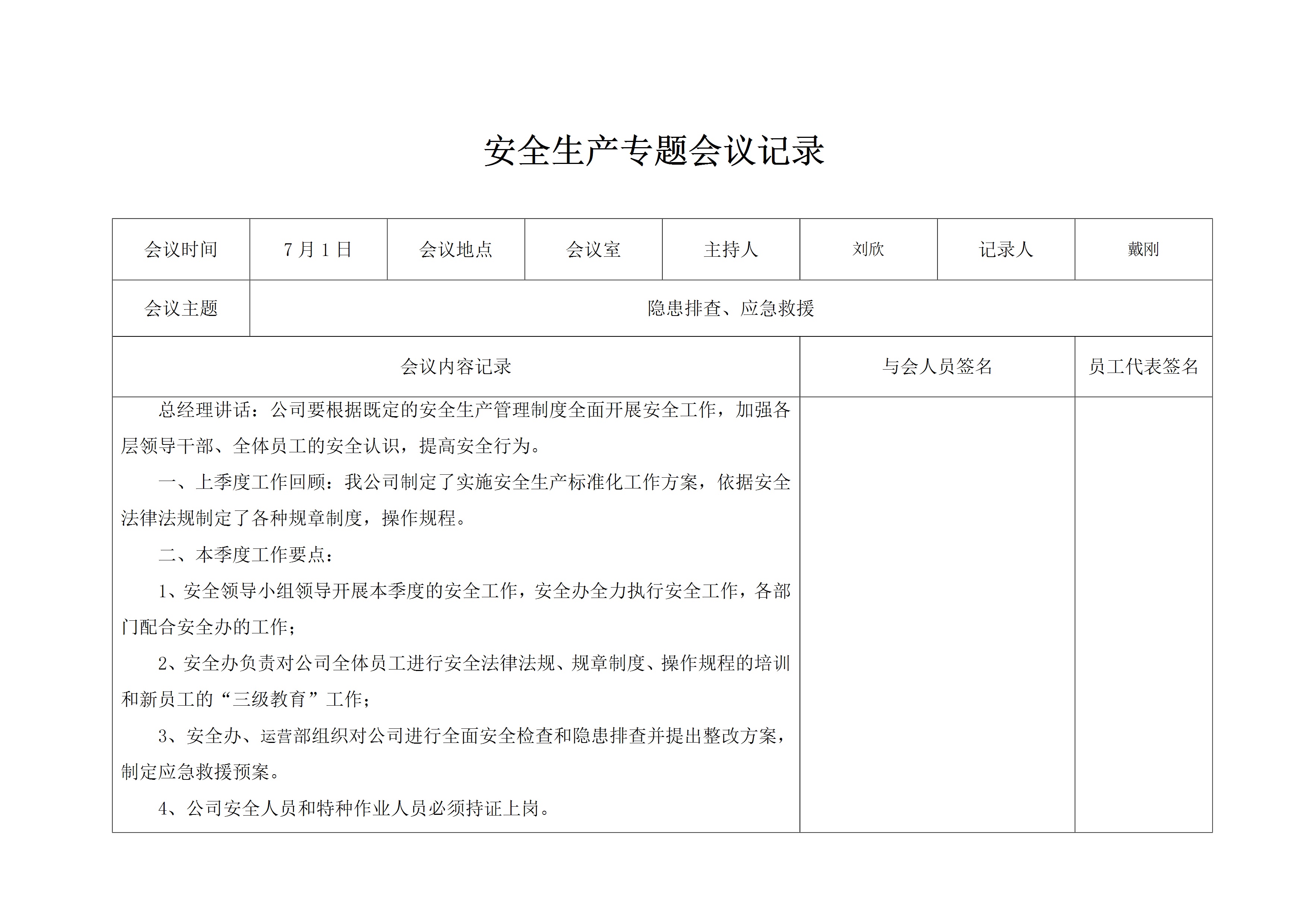 2季度安全生产专题会议记录