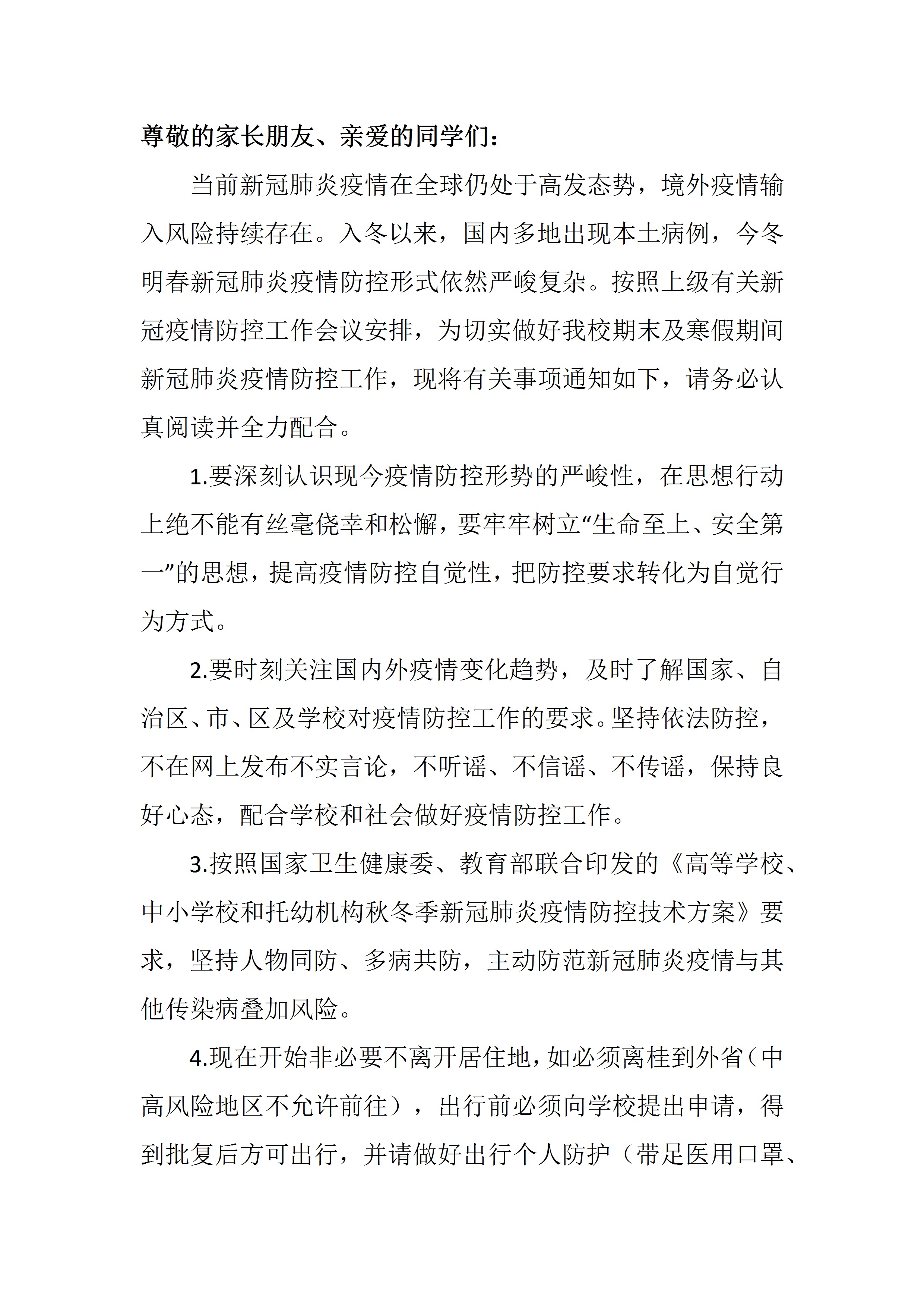 2021XX学校关于疫情防控的告知信