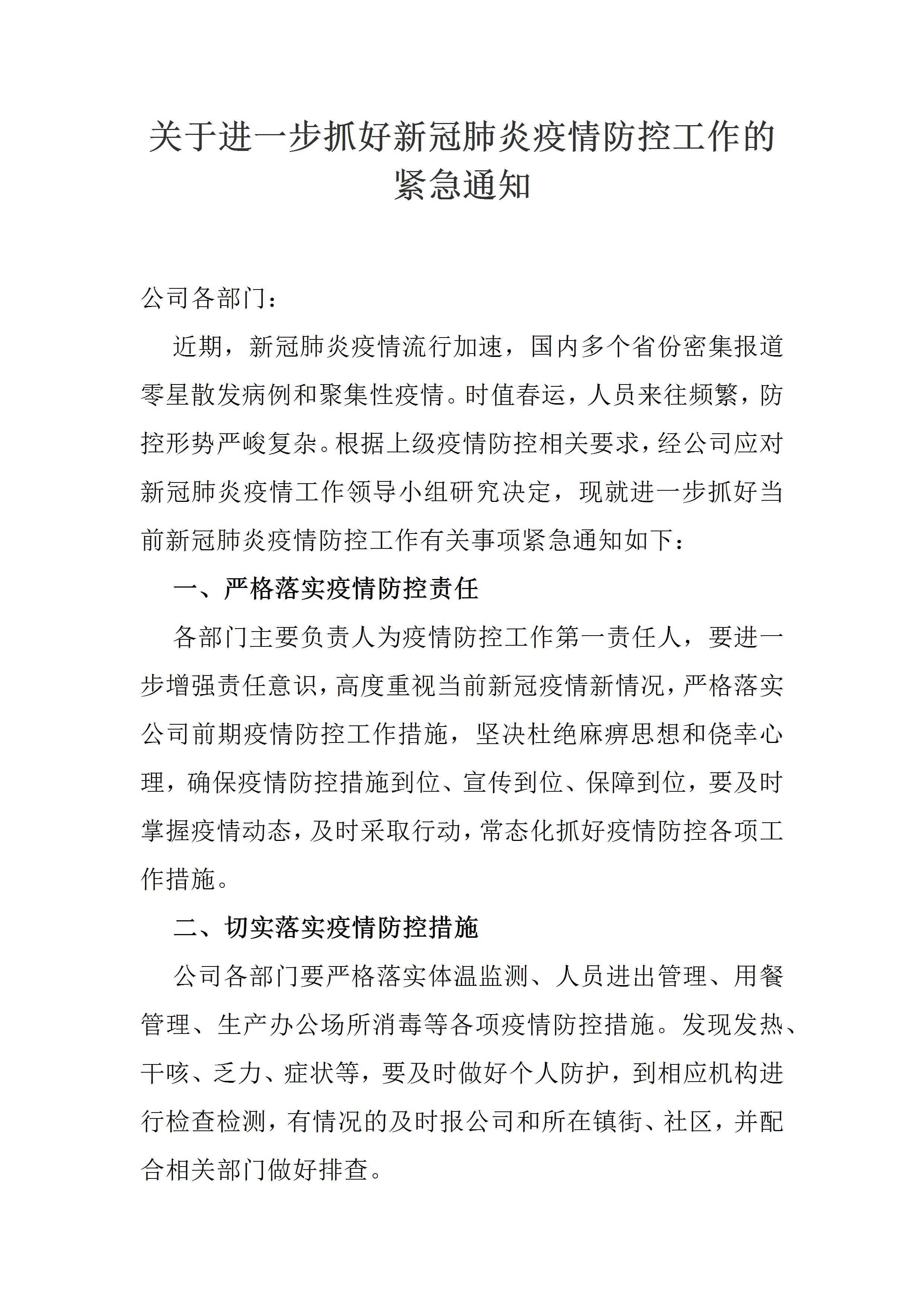 / 2021XX公司关于进一步抓好新冠疫情防控工作的紧急通知