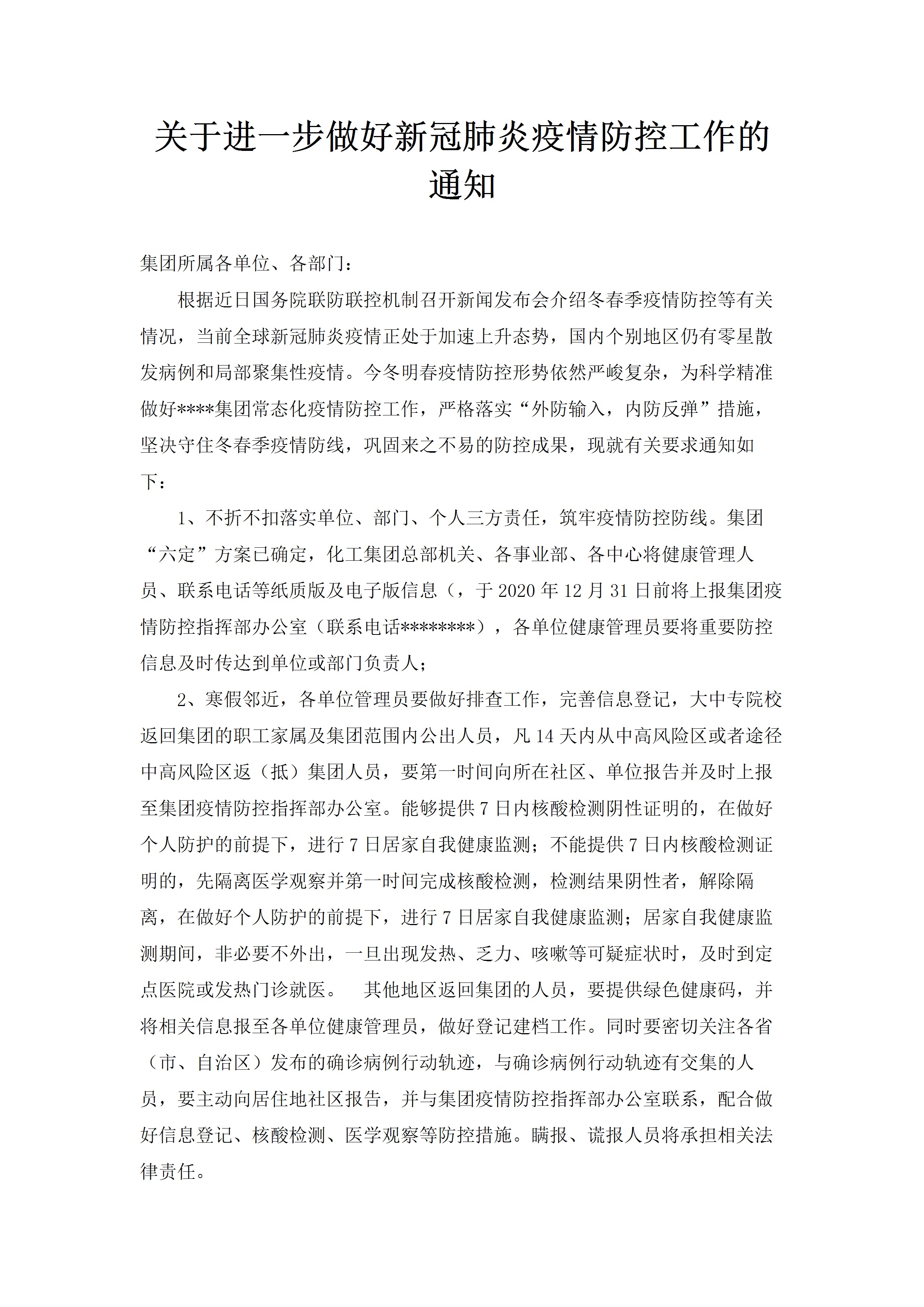 2021XX公司关于进一步做好新冠肺炎疫情防控工作的通知