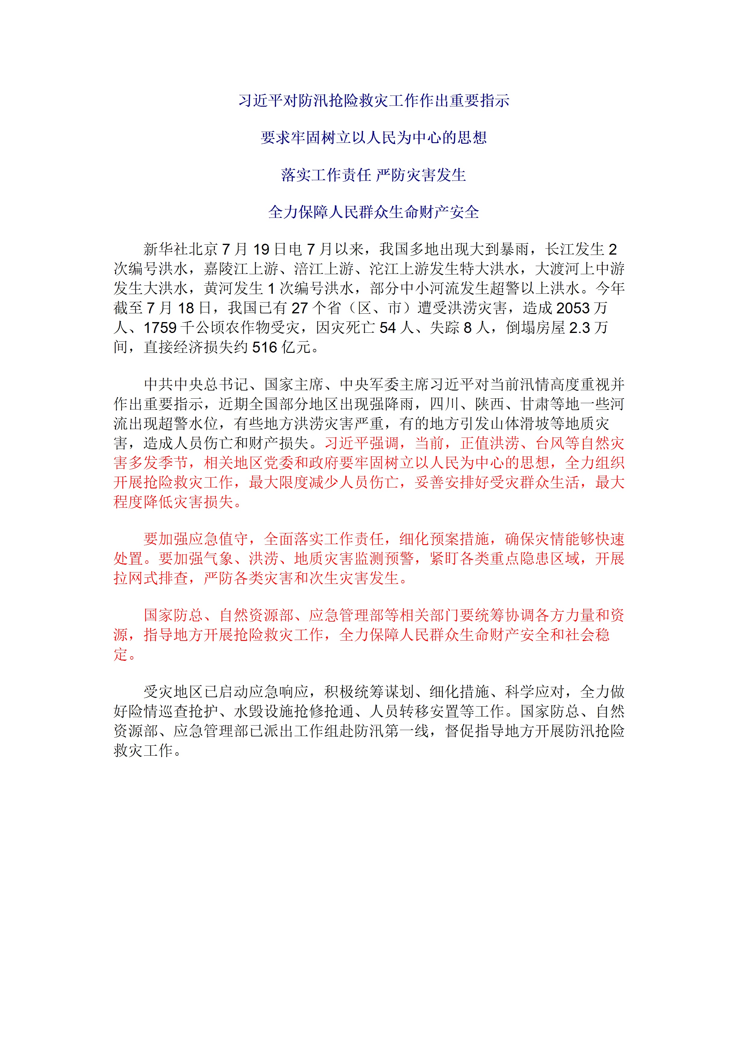 / 2018年7月对防汛抢险救灾工作作出重要指示