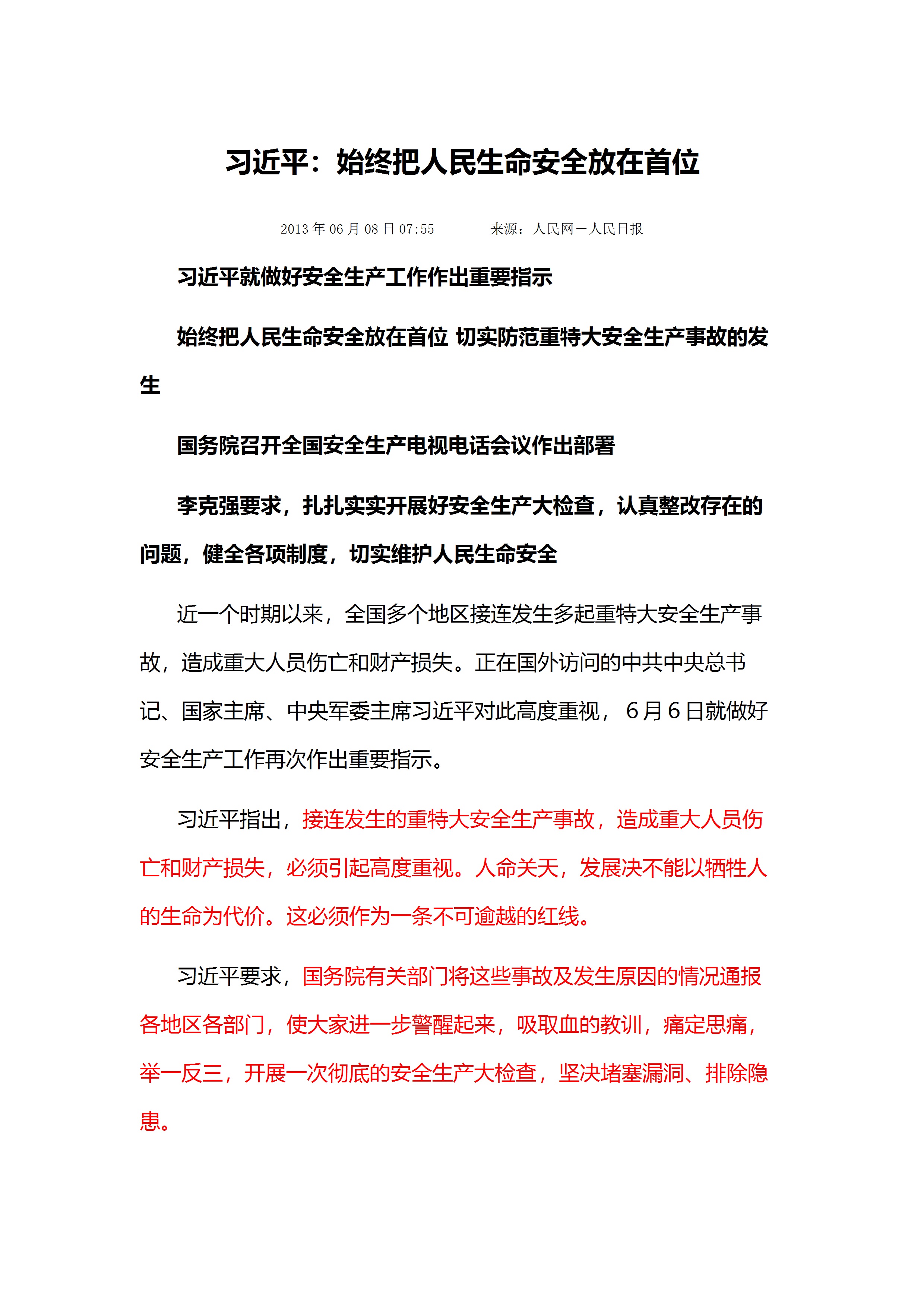 / 2013年6月6日做好安全生产工作作出重要指示