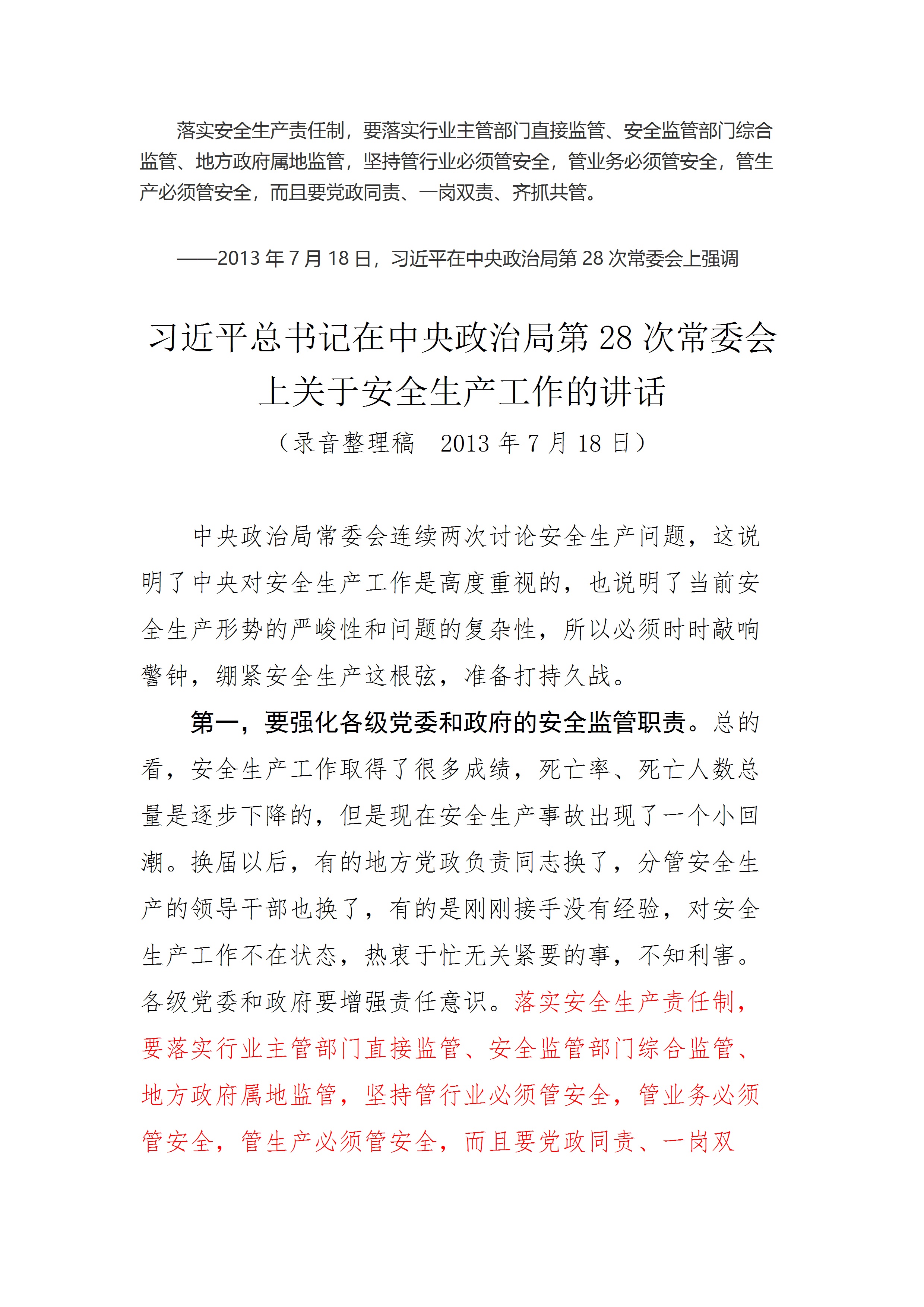 2013年7月18日习近平在中央政治局第28次常委会上强调