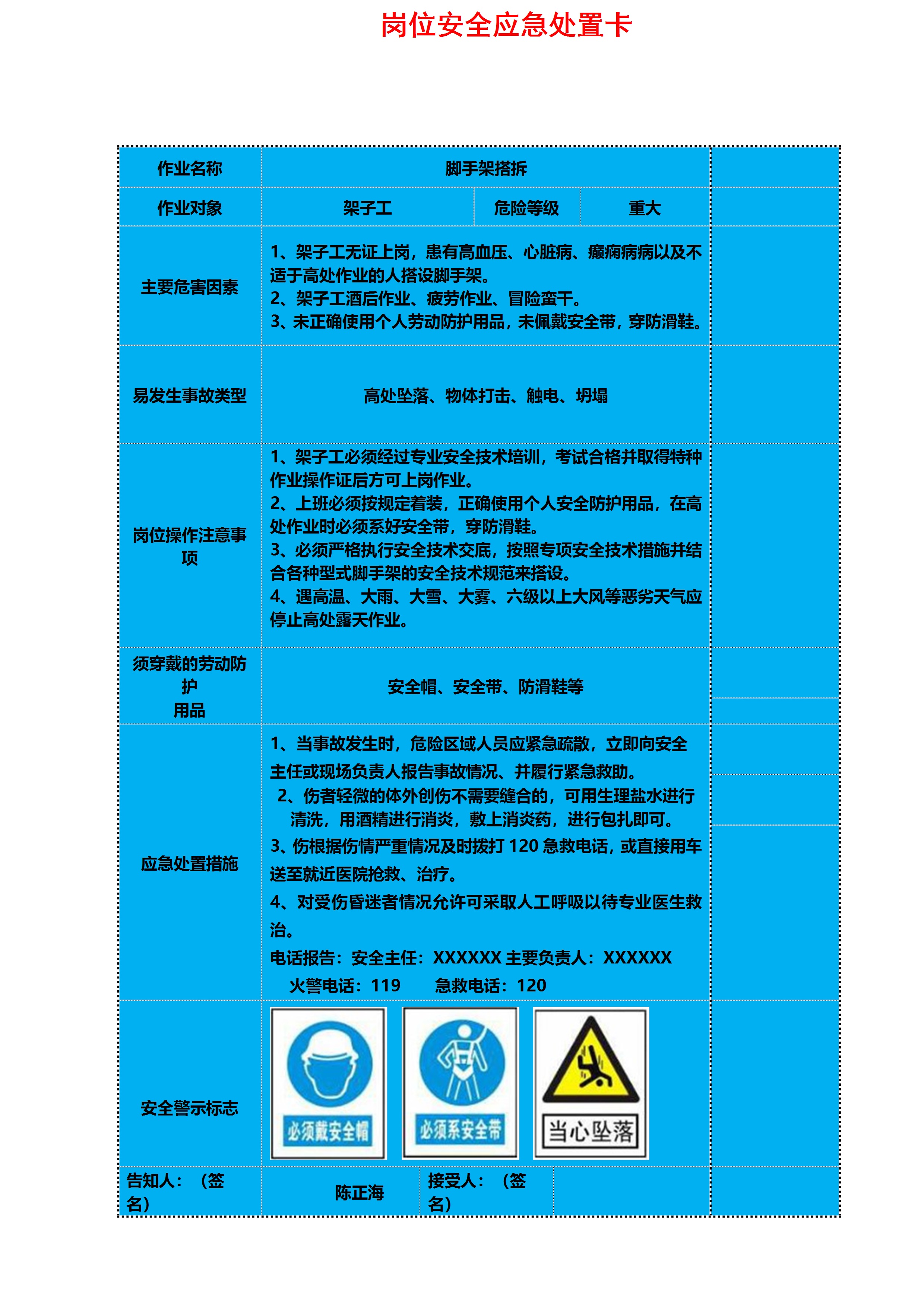 13个木工,架子工等岗位安全应急处置卡