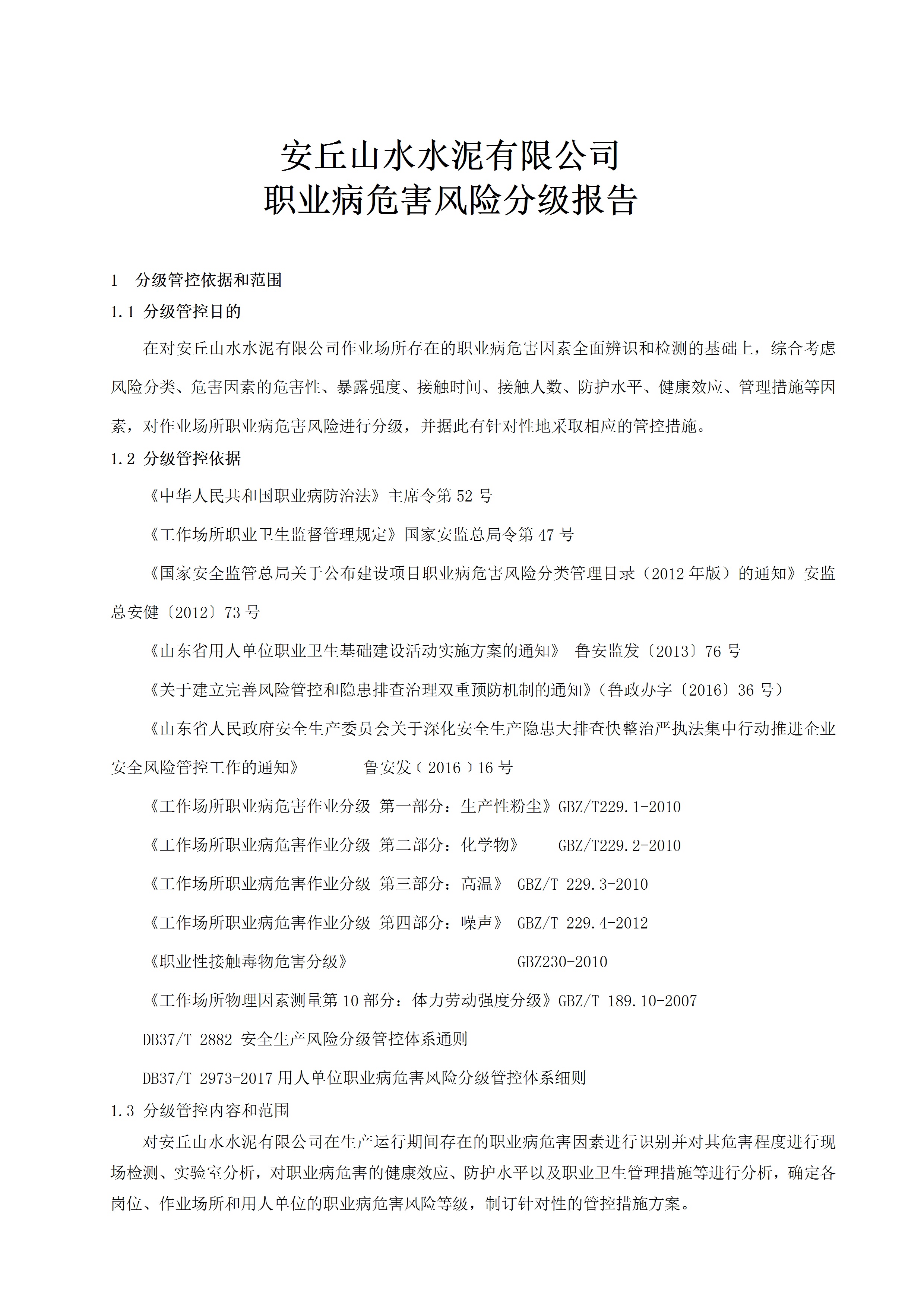 / 安丘山水水泥有限公司职业病危害风险分级报告