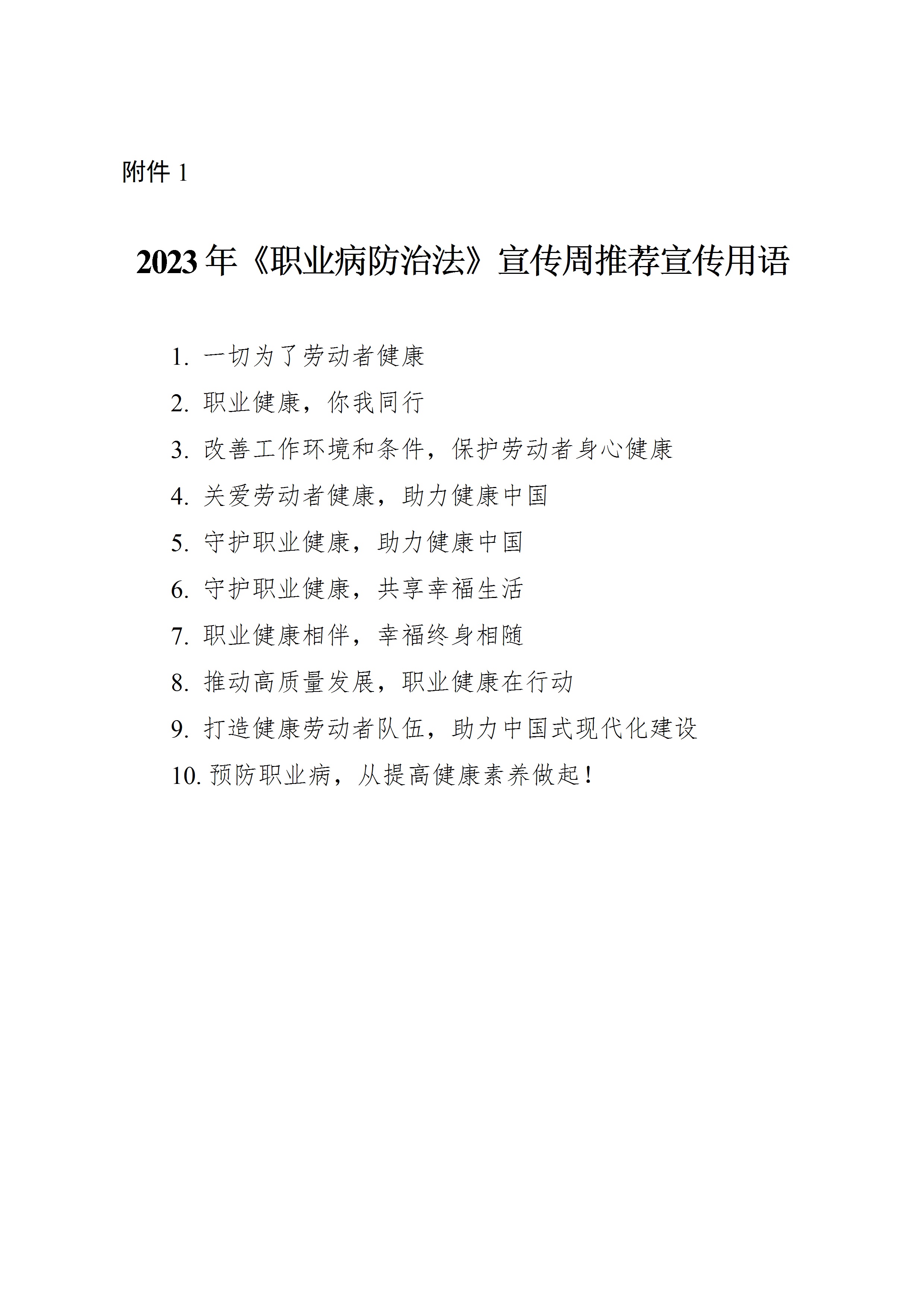 / 2023年职业病防治法宣传周推荐宣传用语