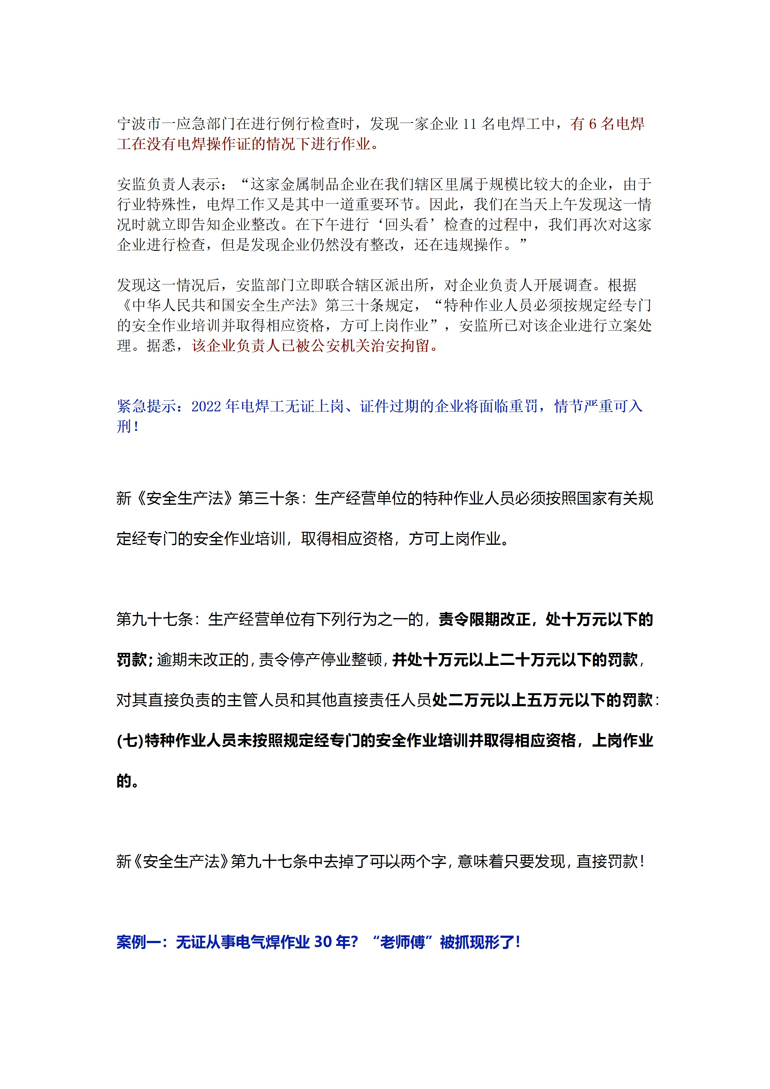 / 2022年电焊工无证上岗,证件过期的将重罚入刑