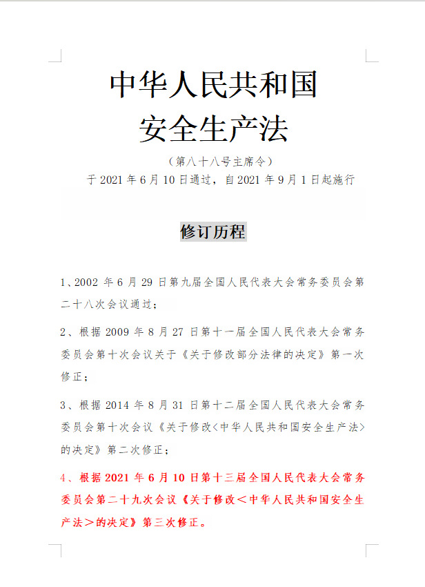 / 2021年安全生产法修正案超详细全文三色修订对照版