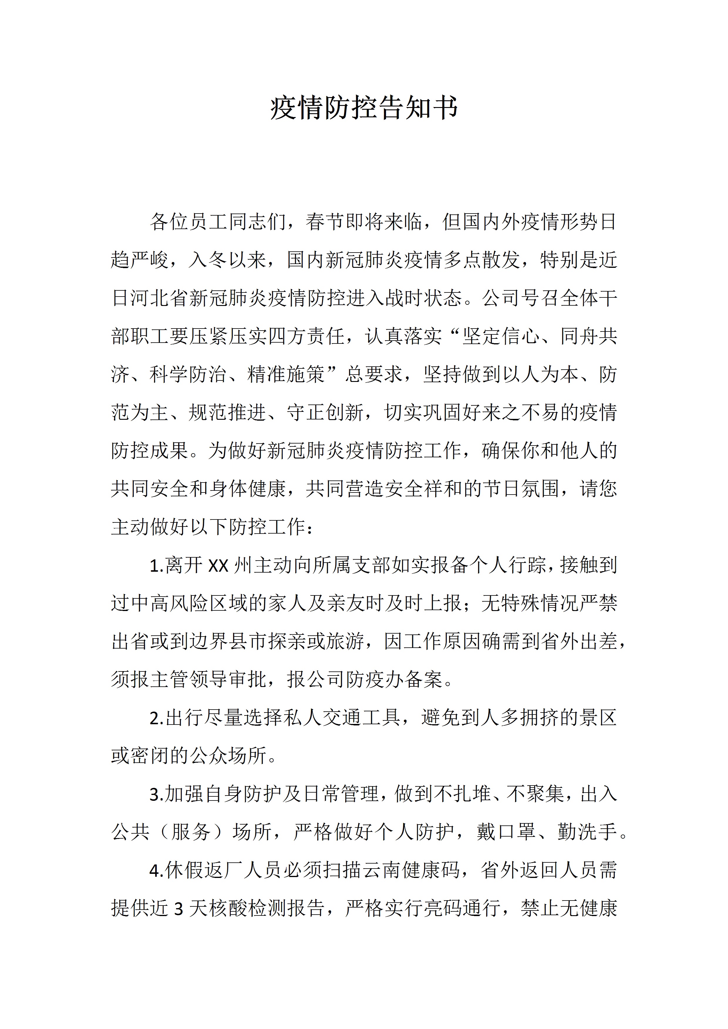 2021年XX公司疫情防控告知书