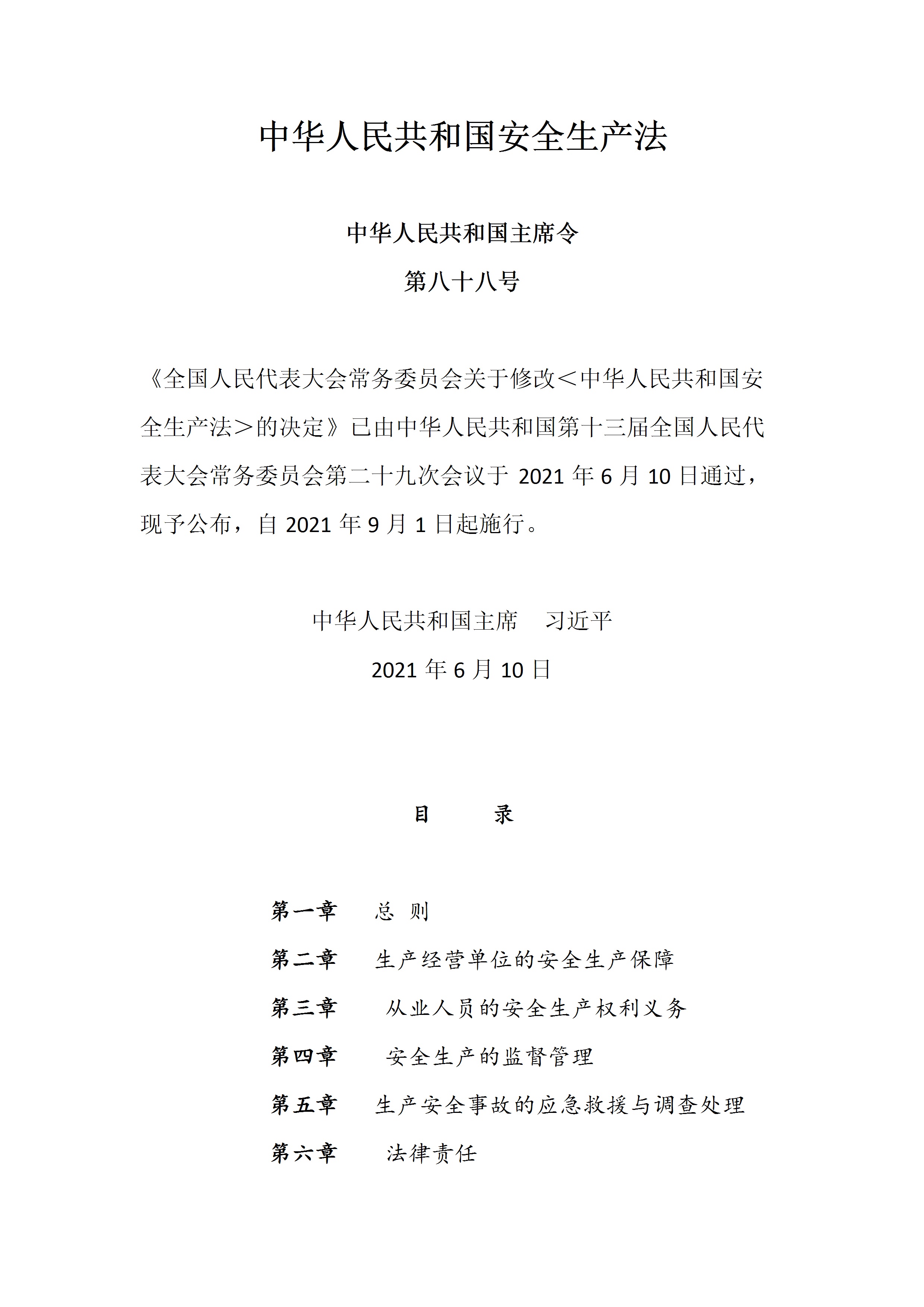 / 2021年6月10日通过中华人民共和国安全生产法全文