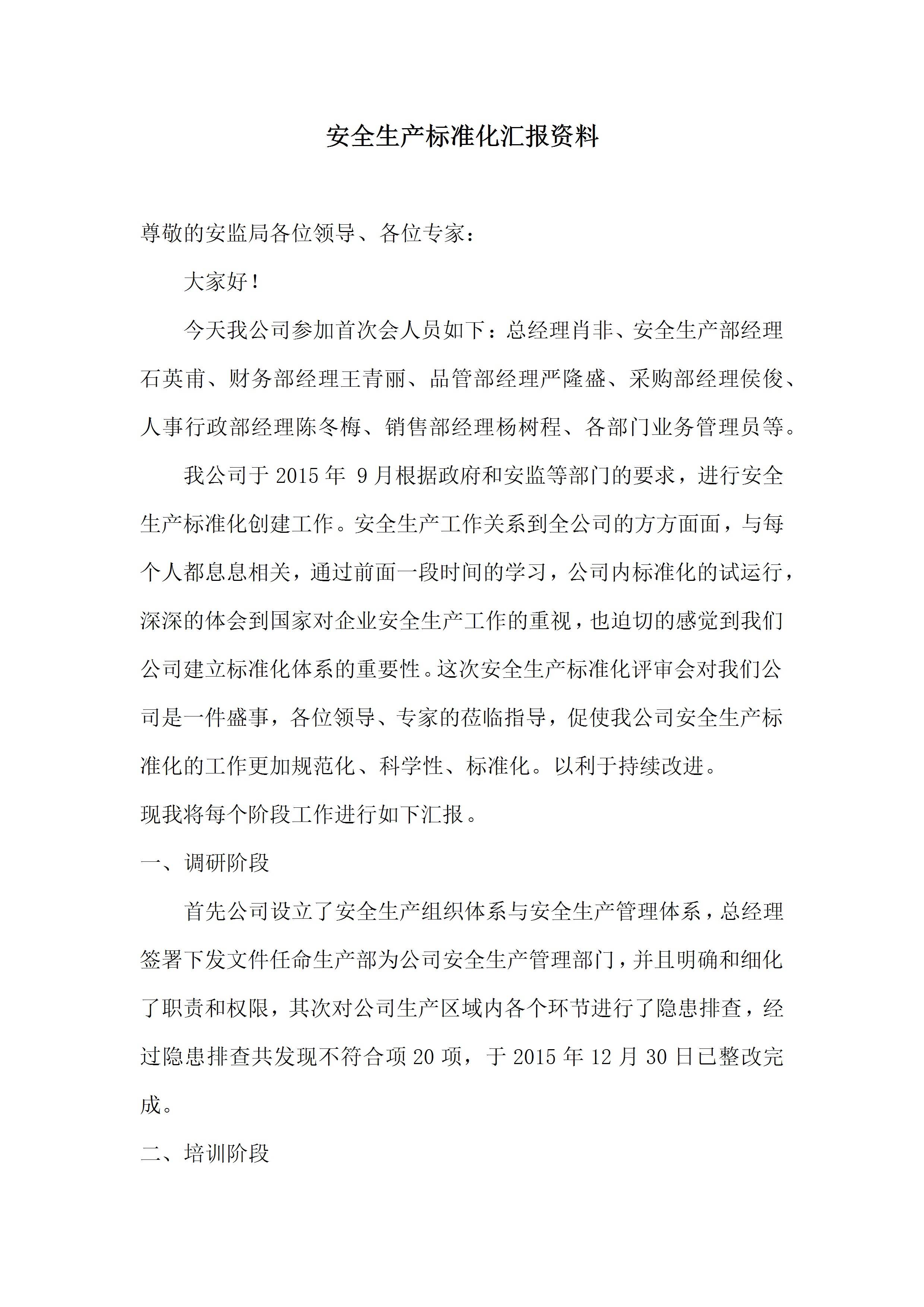 / 安全生产标准化汇报资料
