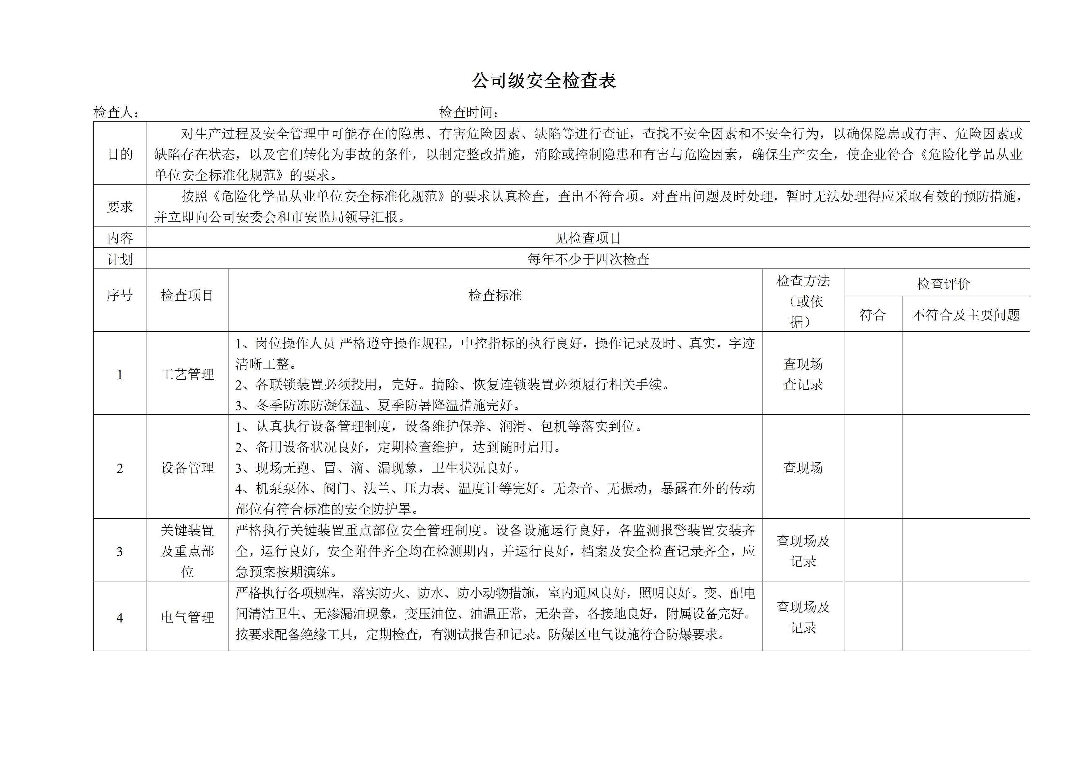 / 安全标准化检查表