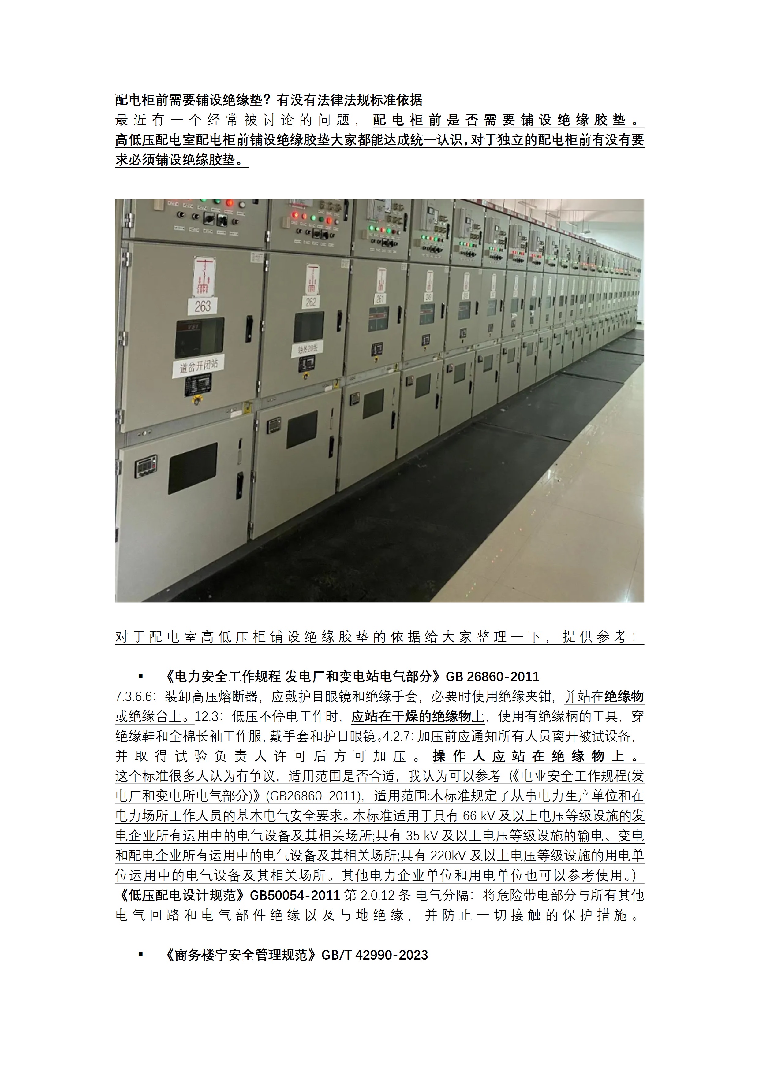 / 配电柜前需要铺设绝缘垫,有没有法律法规标准依据[文档]