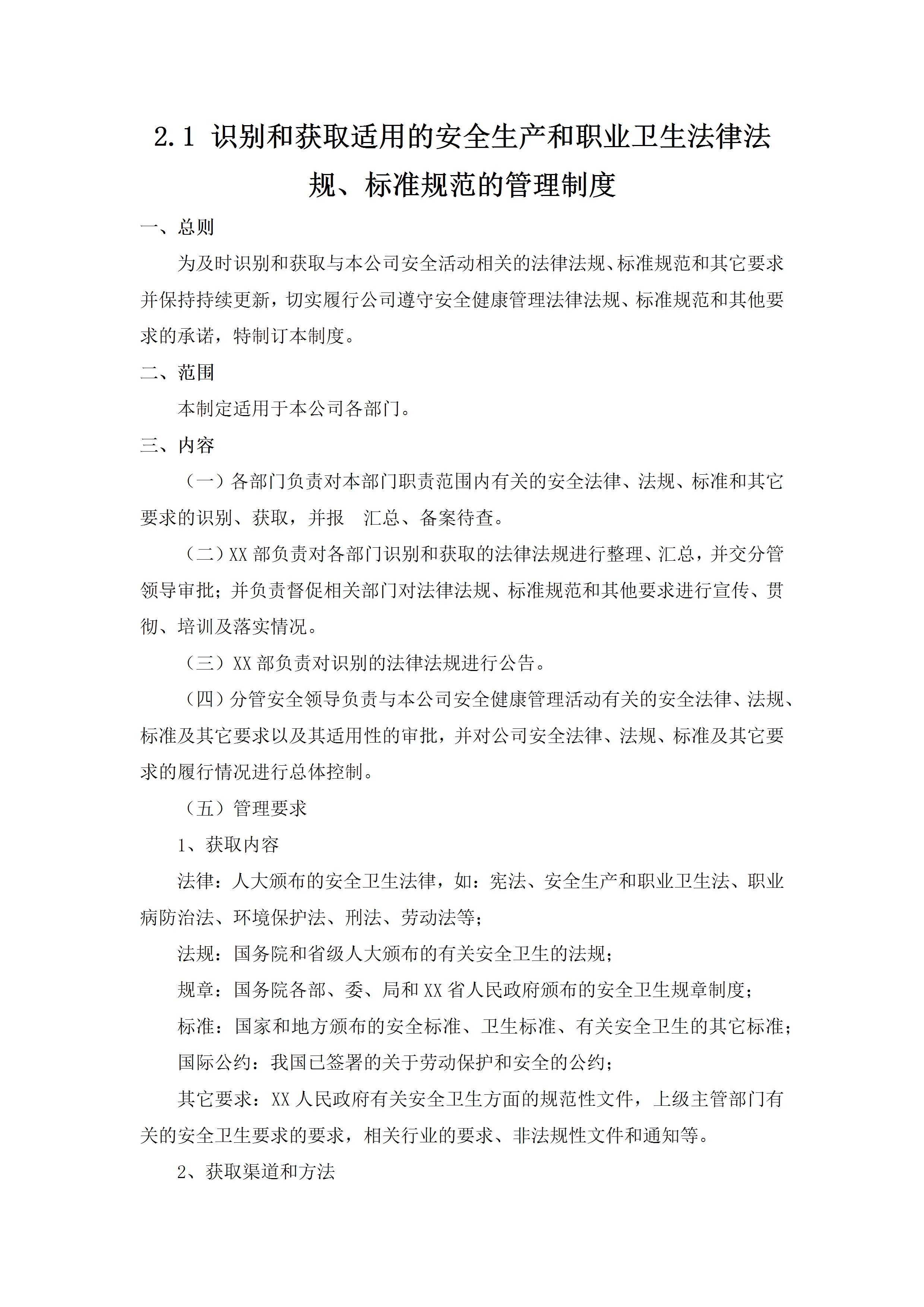 识别和获取适用的安全生产和职业卫生法律法规,标准规范的管理制度[文档]