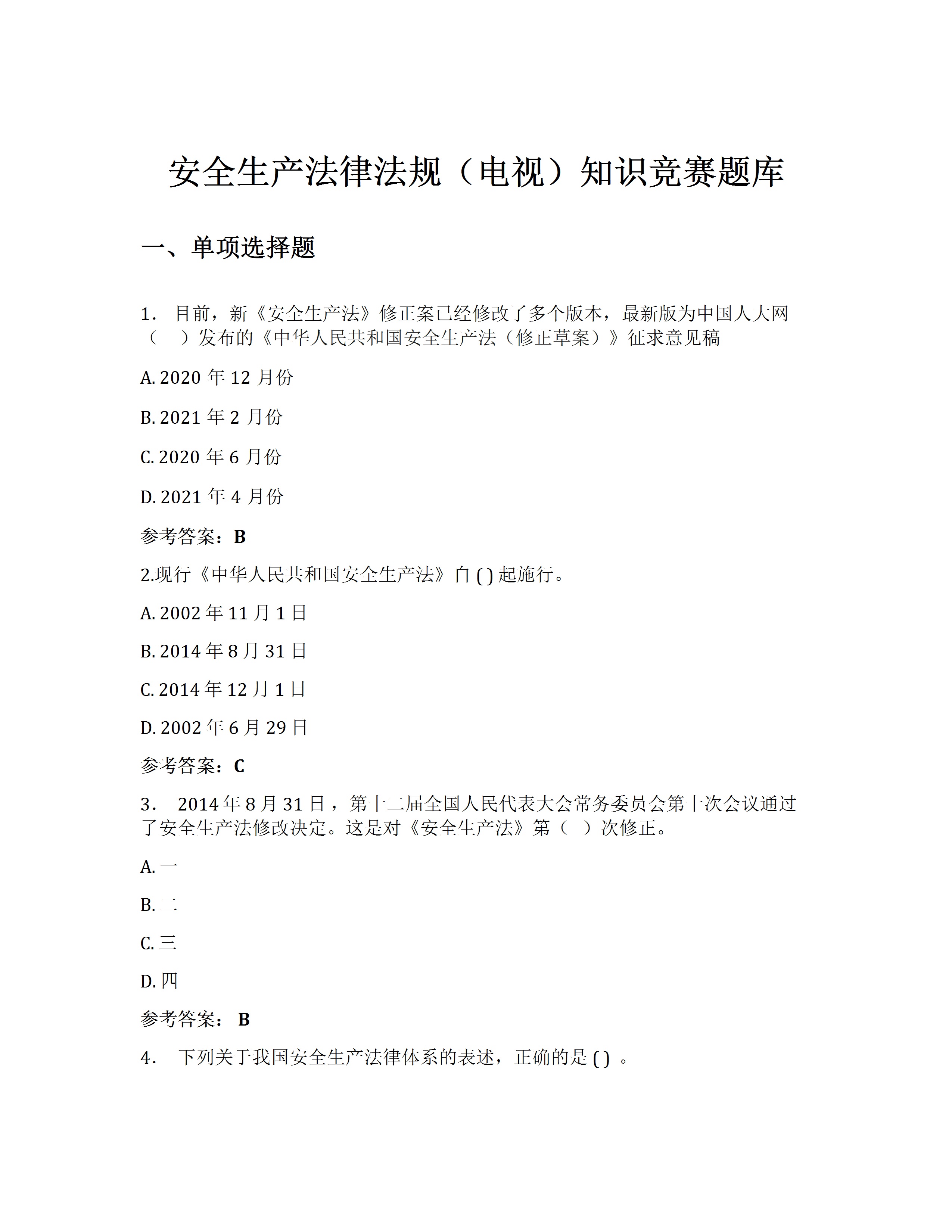 / 安全生产法律法规(电视)知识竞赛题库(100页)[文档]