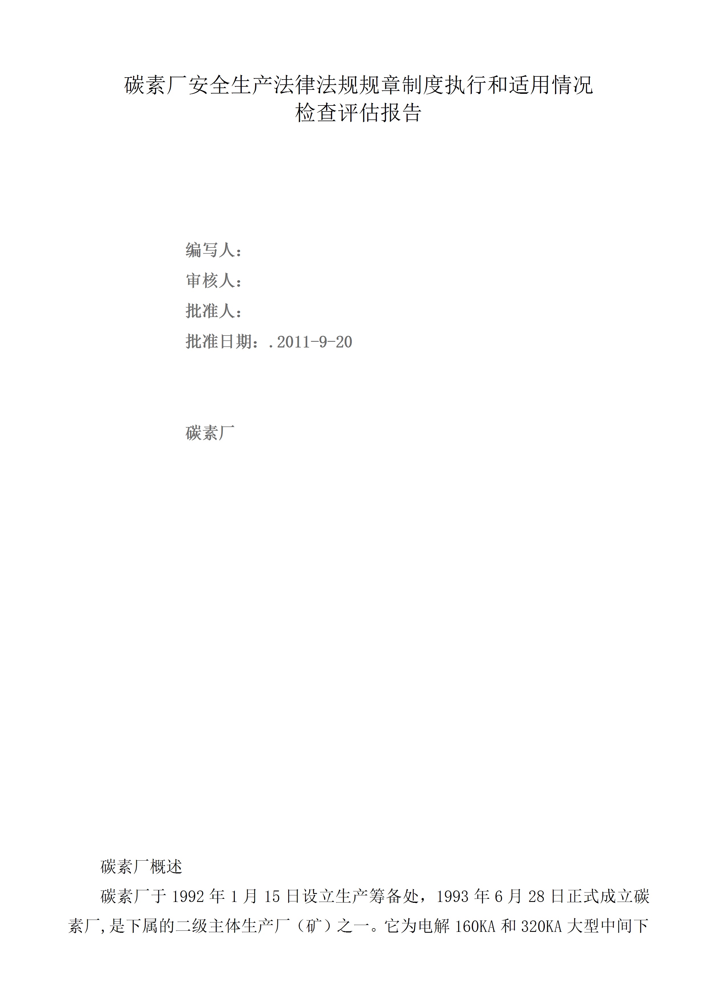 (参考)安全生产法律法规规章制度执行和适用情况检查评估报告[文档]