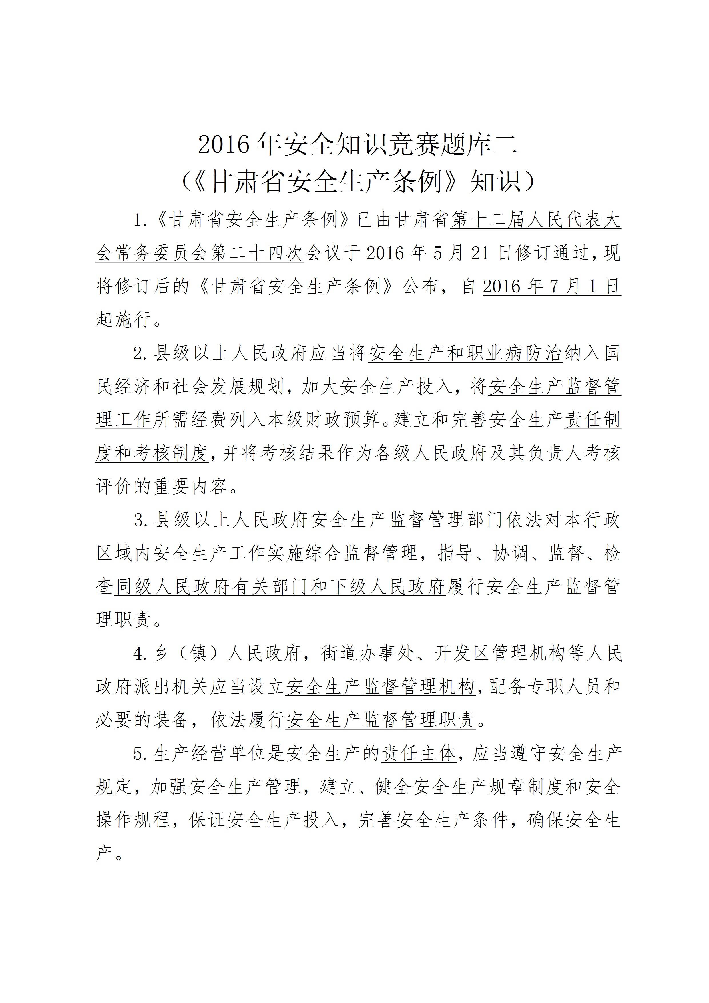 / 安全知识竞赛题库二(《甘肃省安全生产条例》)