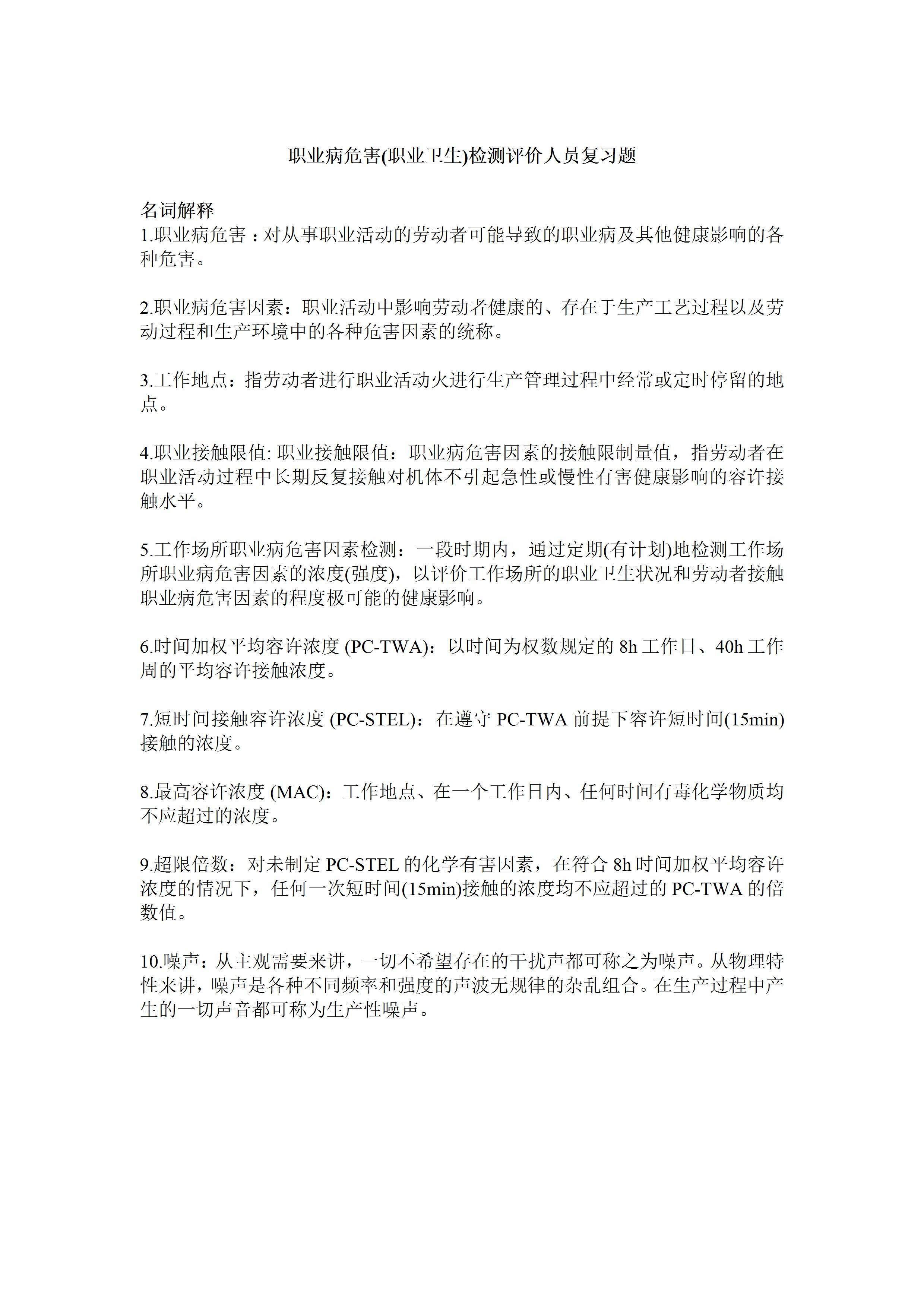 / 第一期考核职业病危害职业卫生检测人员复习题