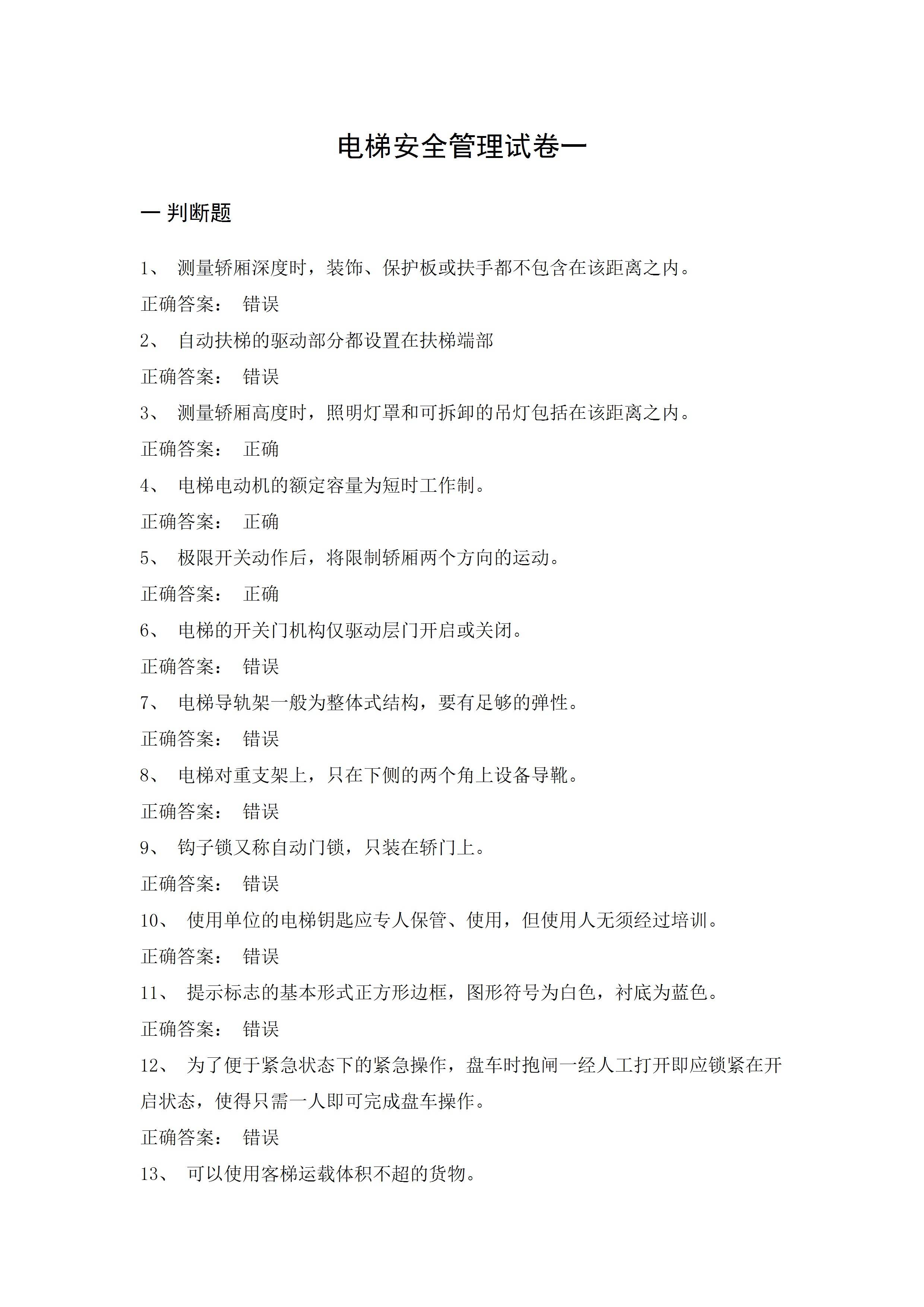/ 电梯安全管理试卷判断题选择题含答案(10套)