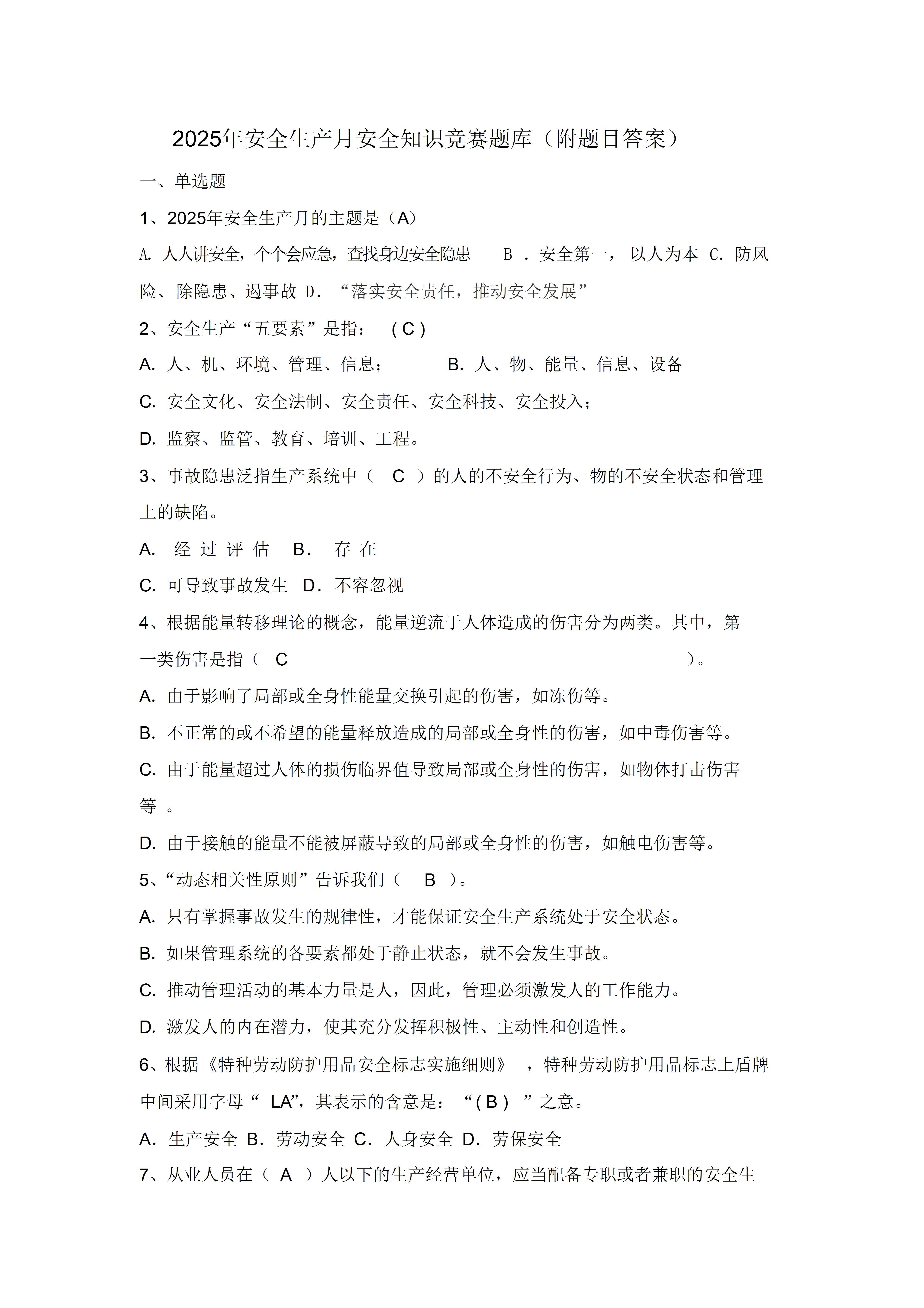 / 安全生产月安全知识竞赛题库(附题目答案)