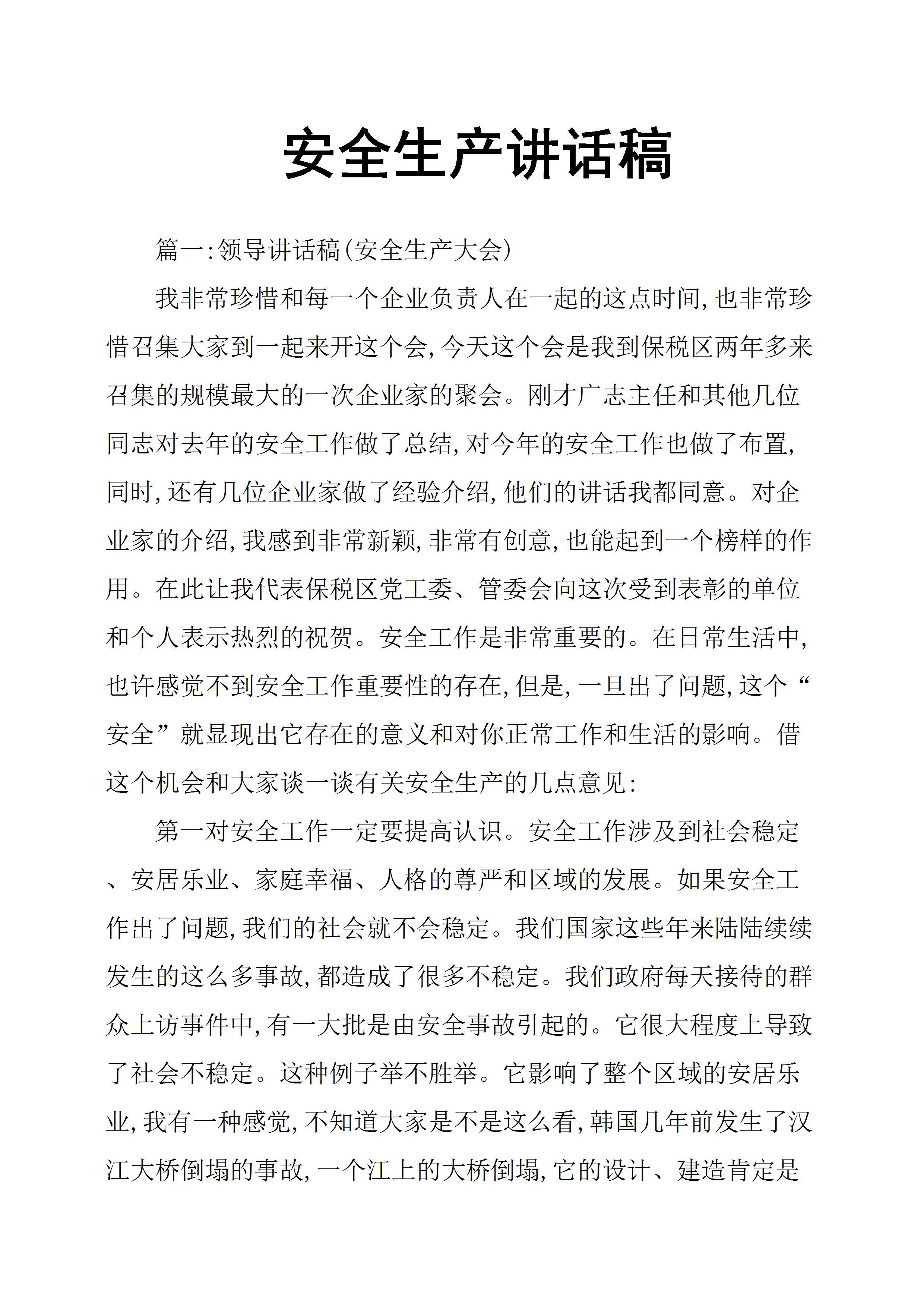 / 安全生产领导讲话稿万能模板[文档]