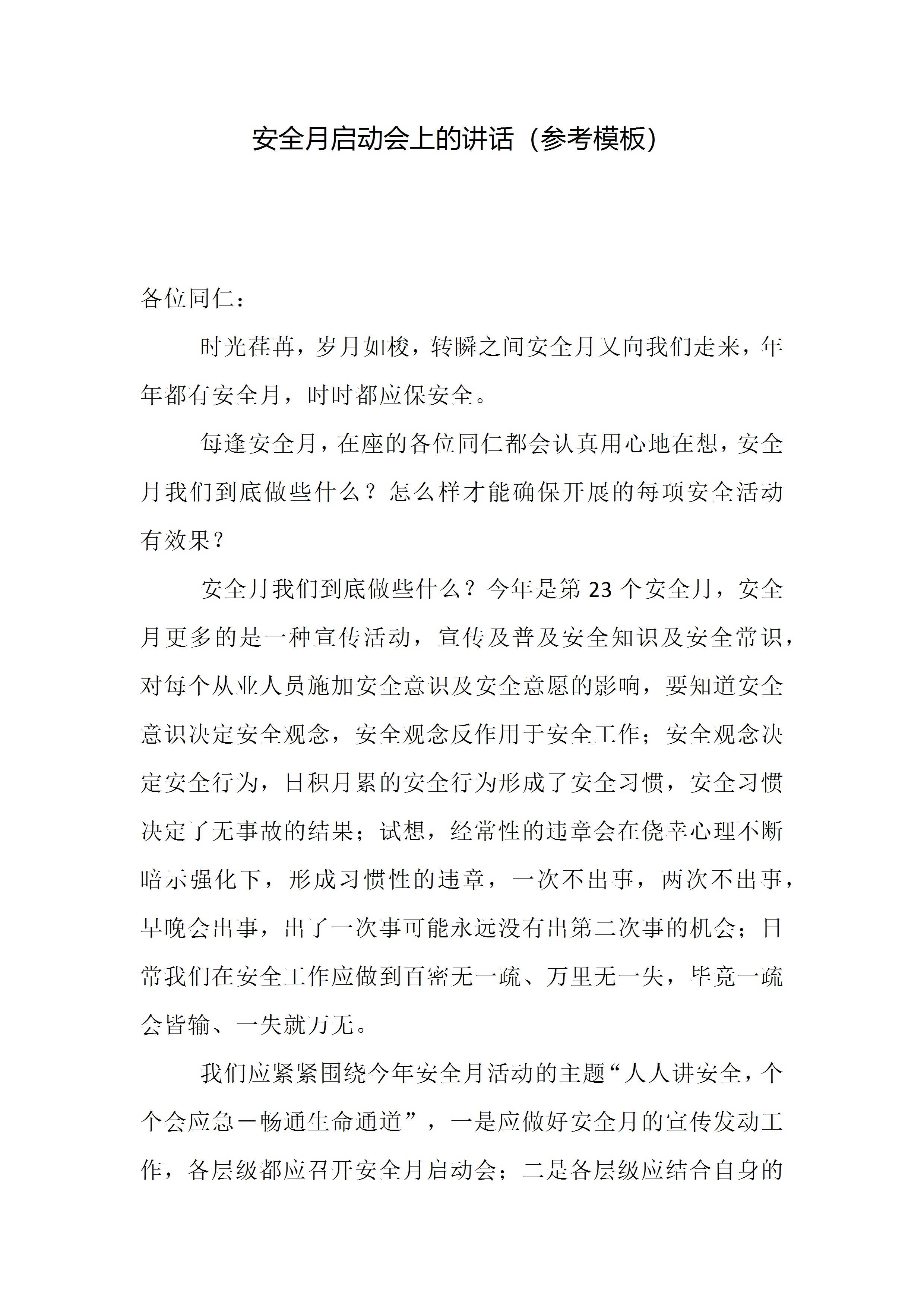 / 安全月启动会上的讲话(参考模板)[文档]