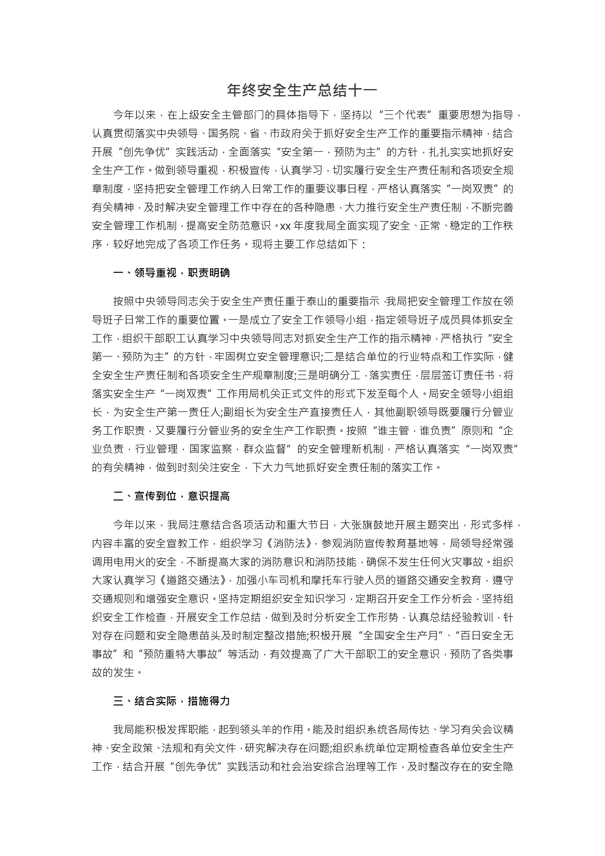 / [总结]年终安全生产总结极简版(交通运输企业)[文档]