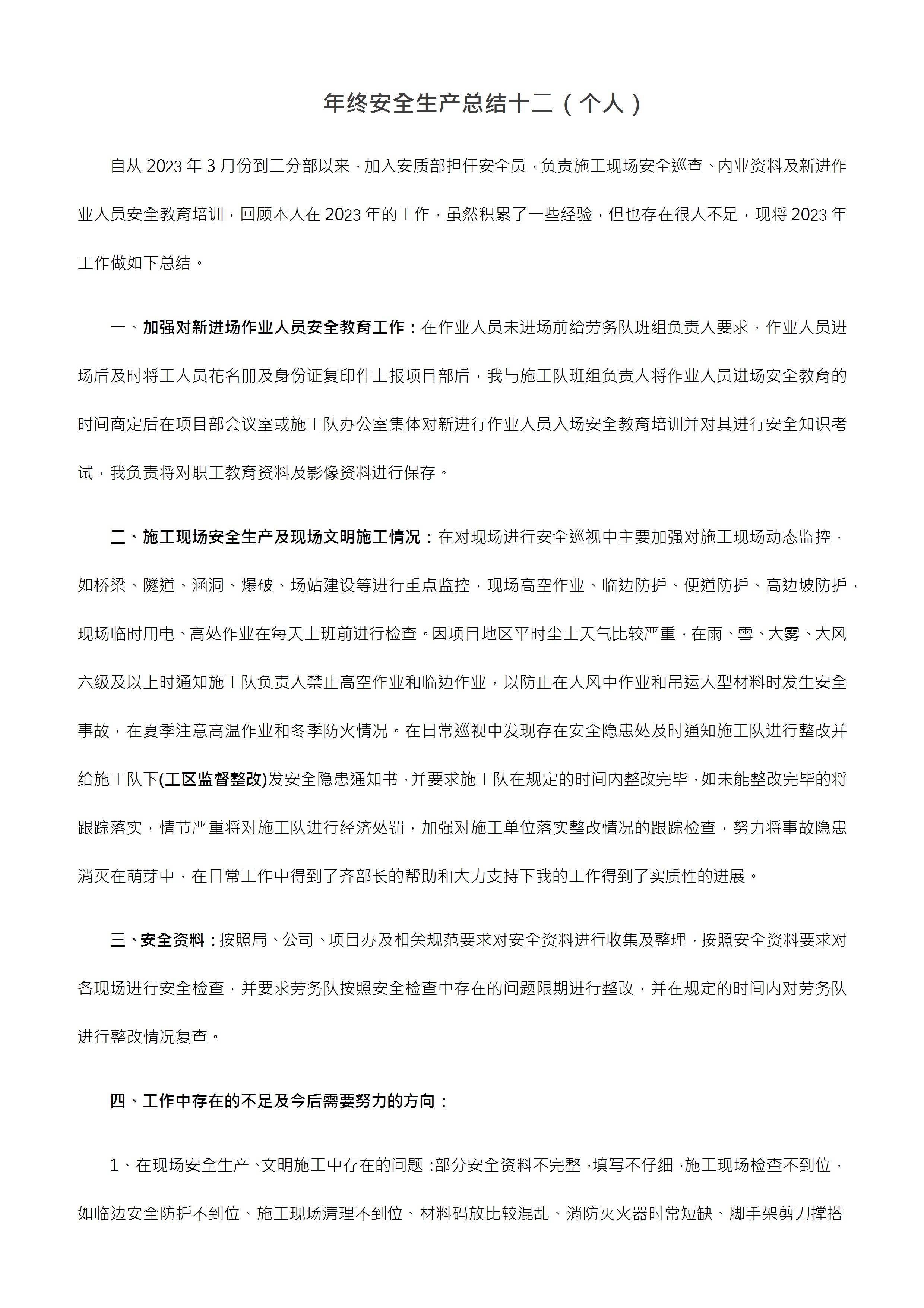 / [总结]年终安全生产总结-施工项目版[文档]