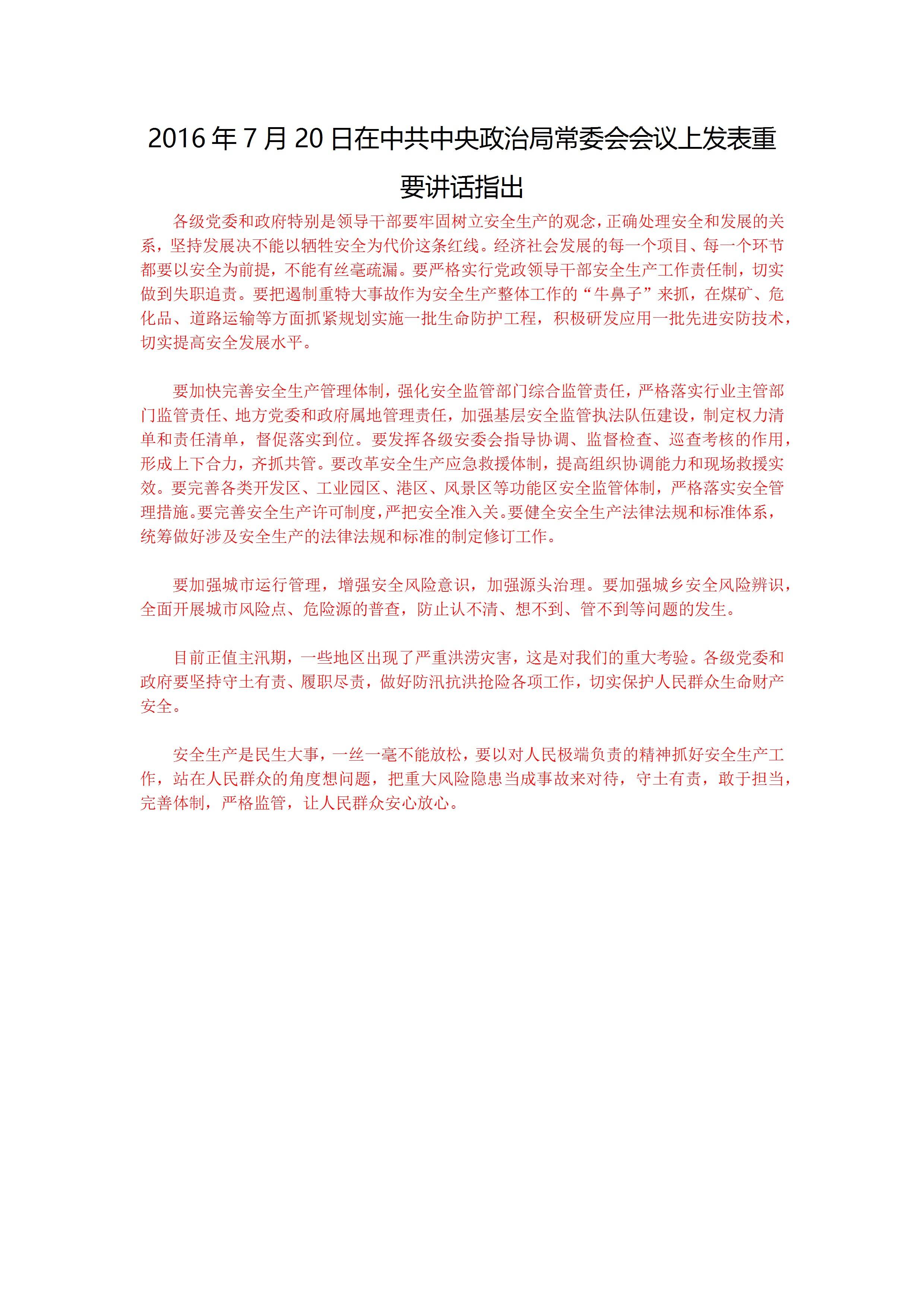 7月20日在中共中央政治局常委会会议上发表重要讲话指出[文档]