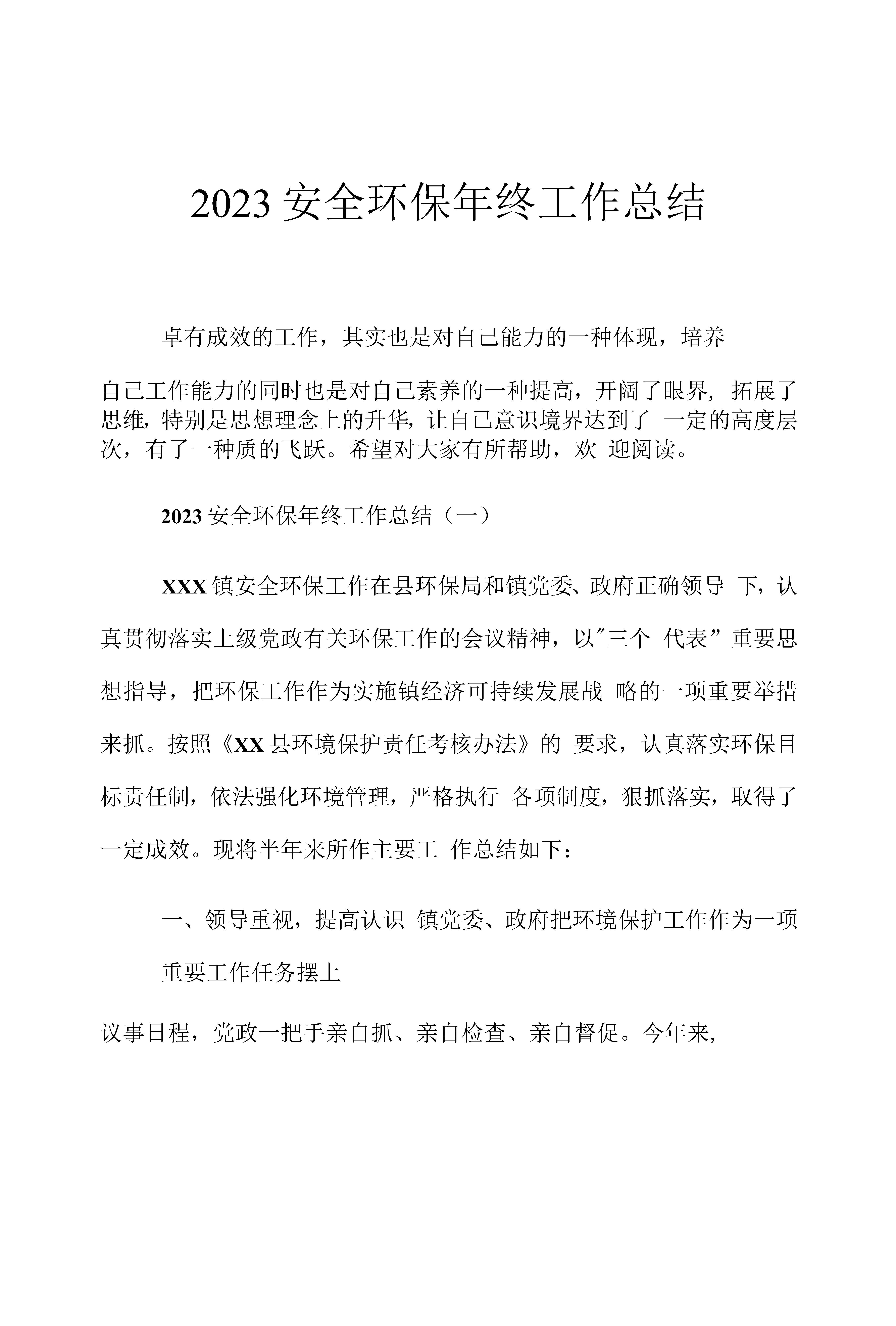 / 2023安全环保年终工作总结(12页)[文档]