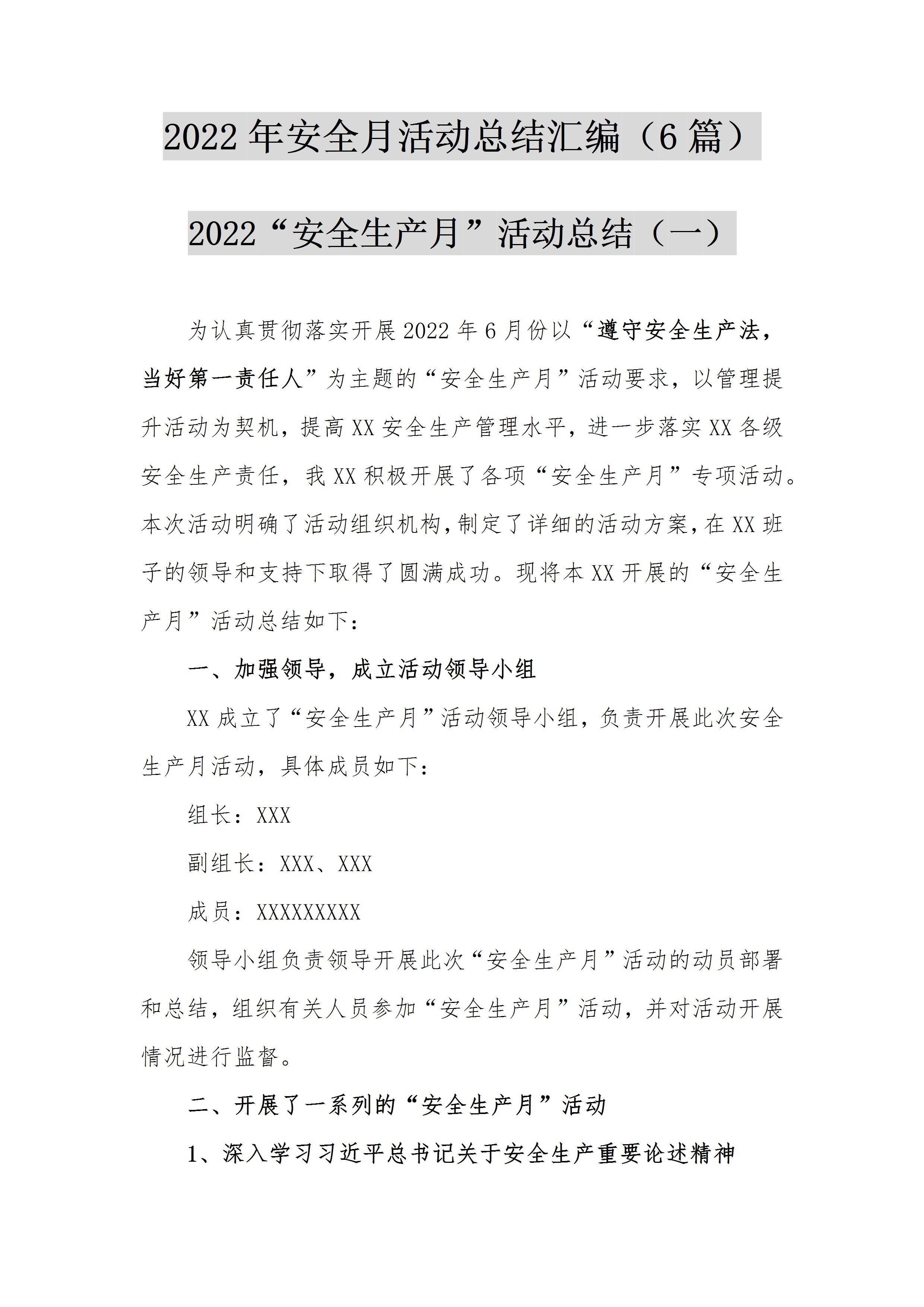 / 2022年安全月活动总结汇编(6篇)[文档]