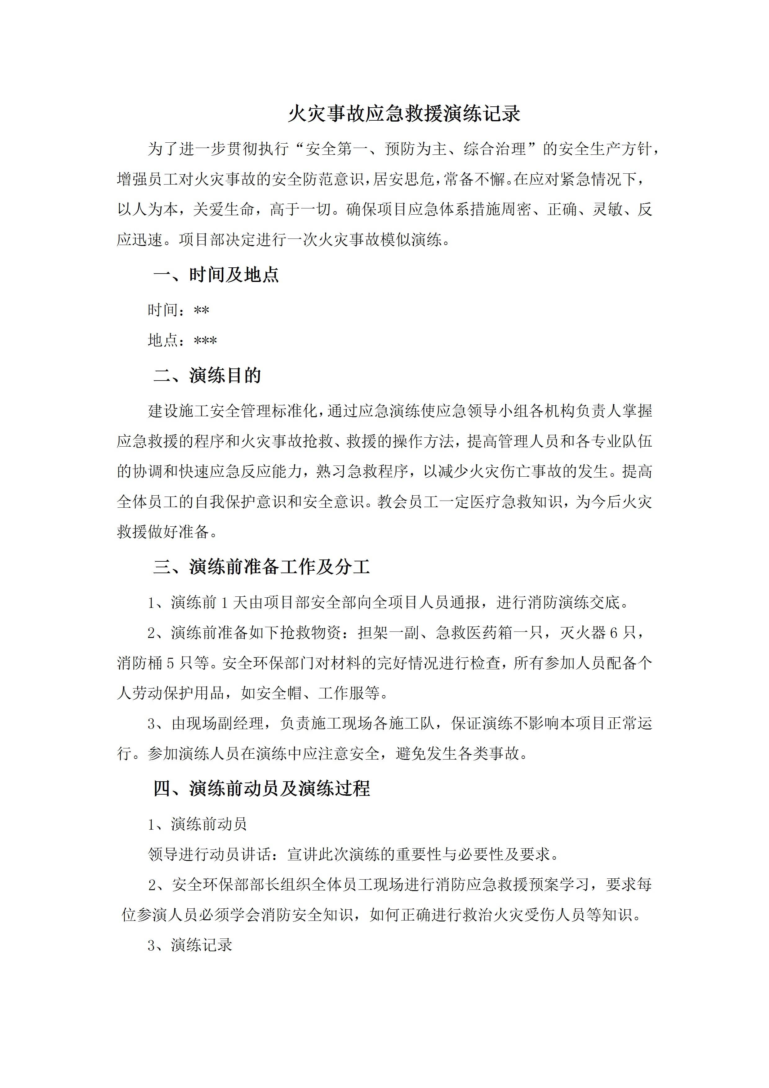 / 项目部火灾事故应急救援演练记录及总结[文档]
