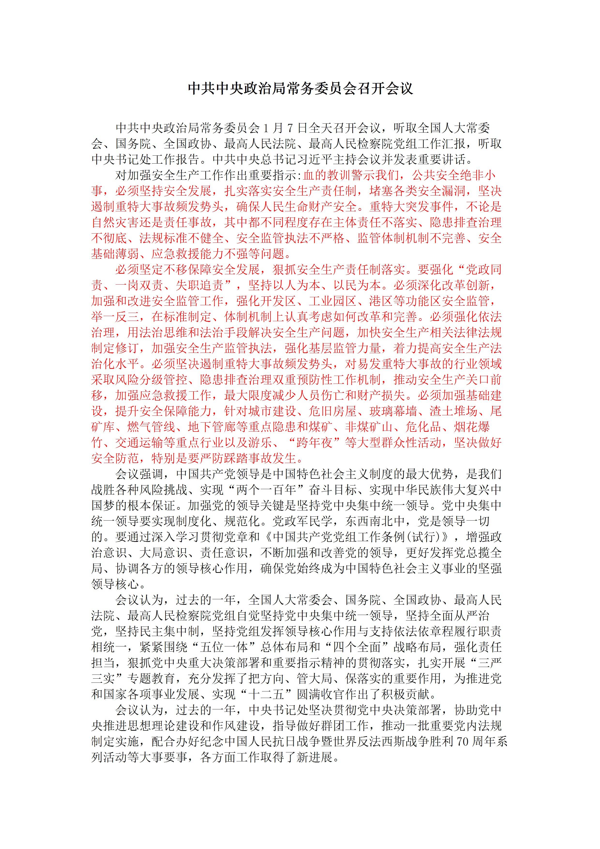 在中共中央政治局常委会会议上发表重要讲话对加强安全生产工作作出重要指示[文档]