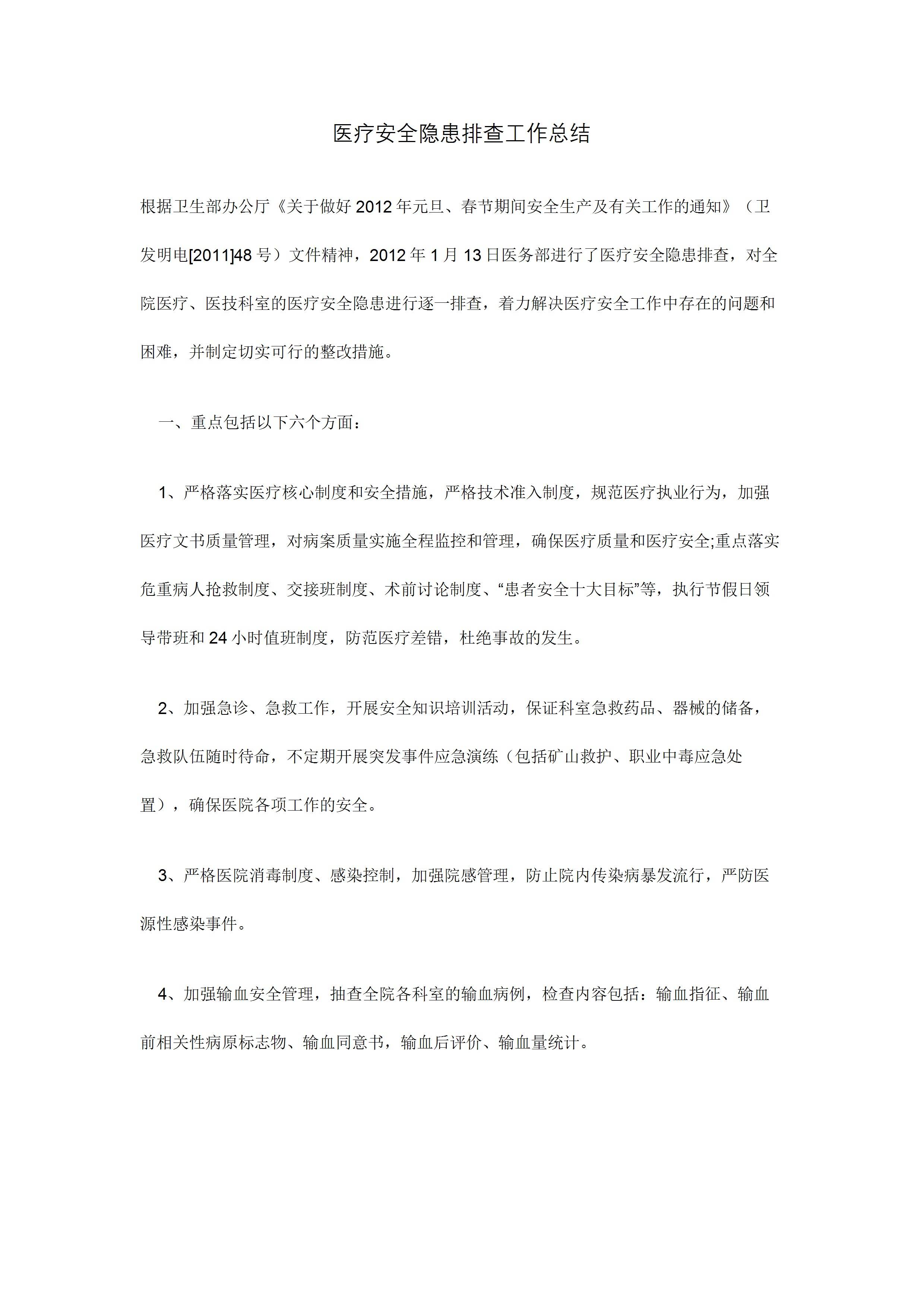 / 医疗安全隐患排查工作总结[文档]