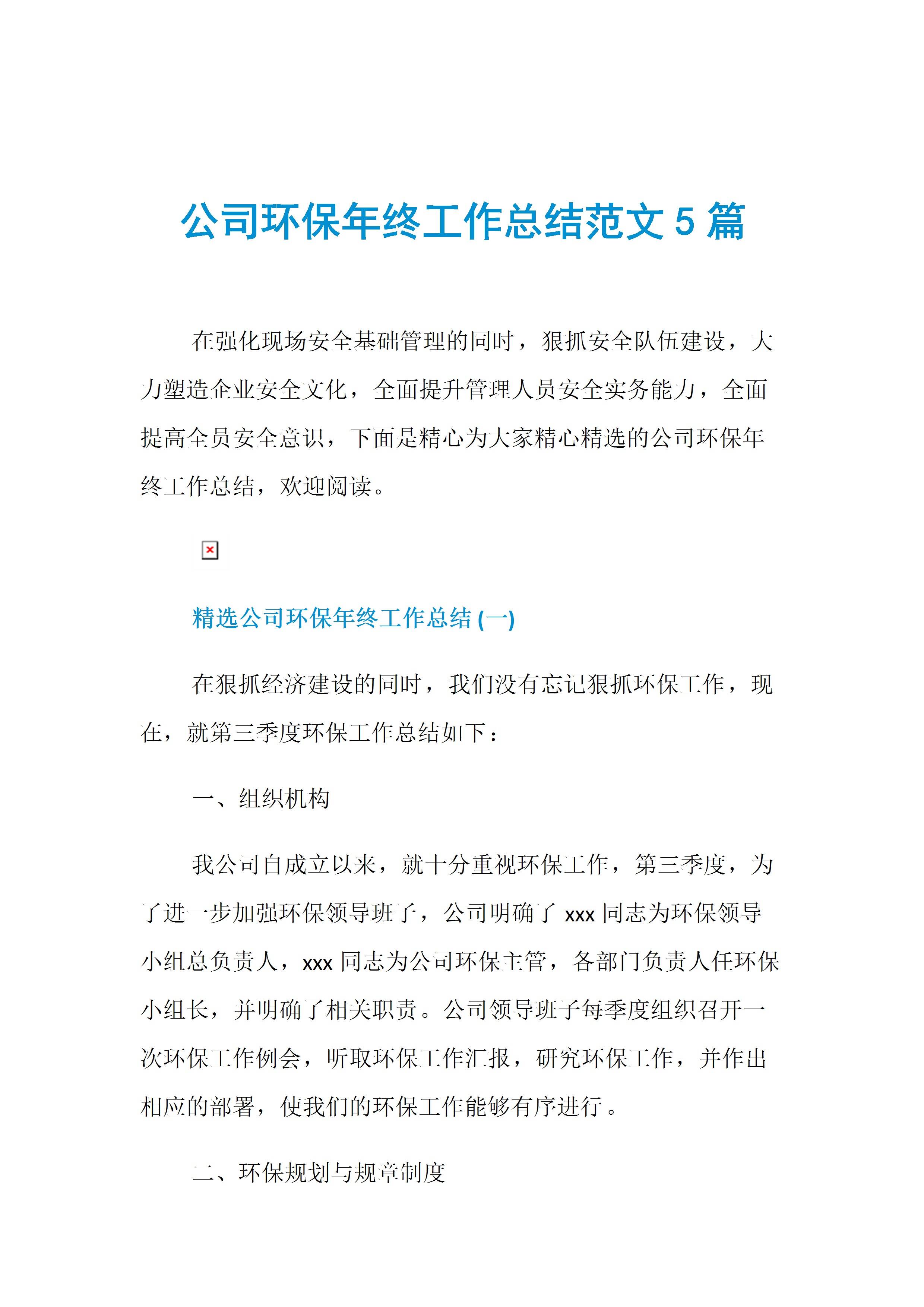 / 公司环保年终工作总结范文汇编(15页)[文档]
